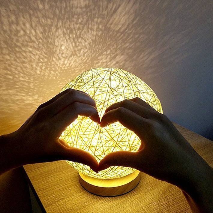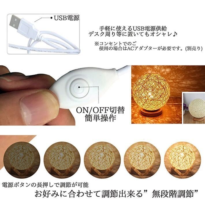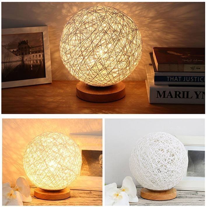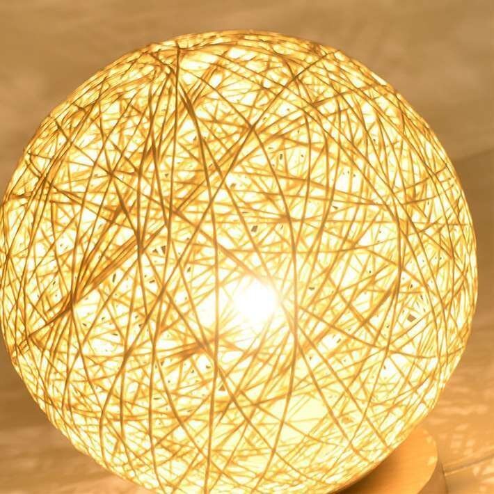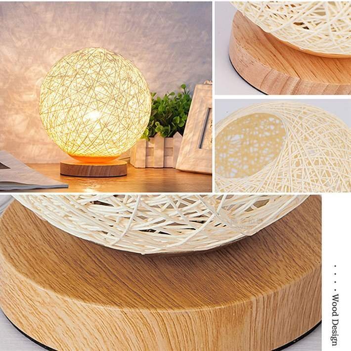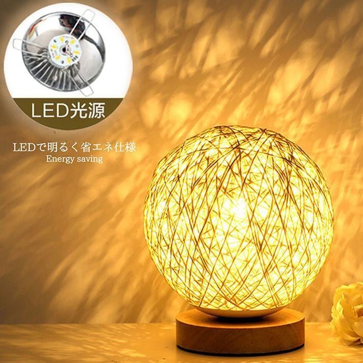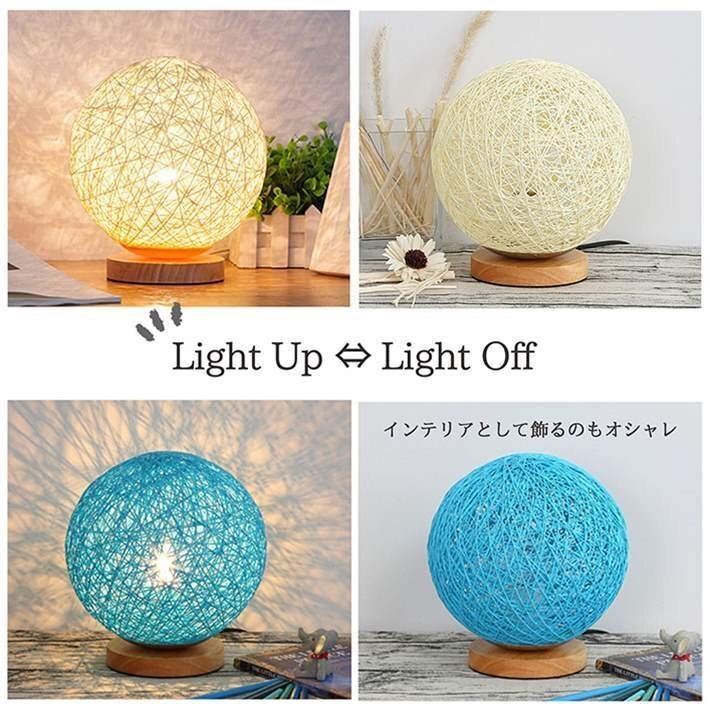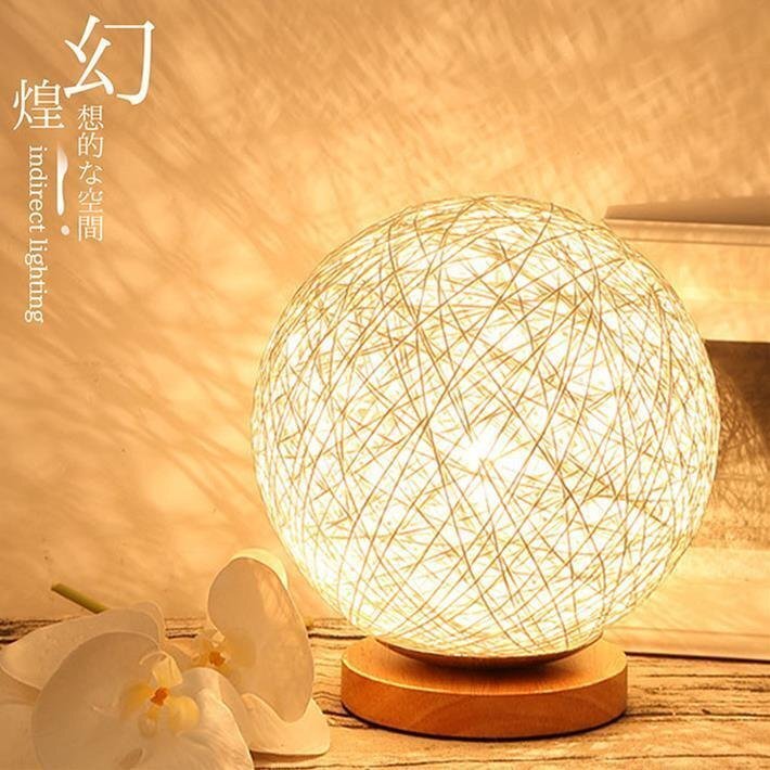 灯すだけ・光溢れる幻想的な空間を演出、球型のカバーと木製の台がシックなルームライト。