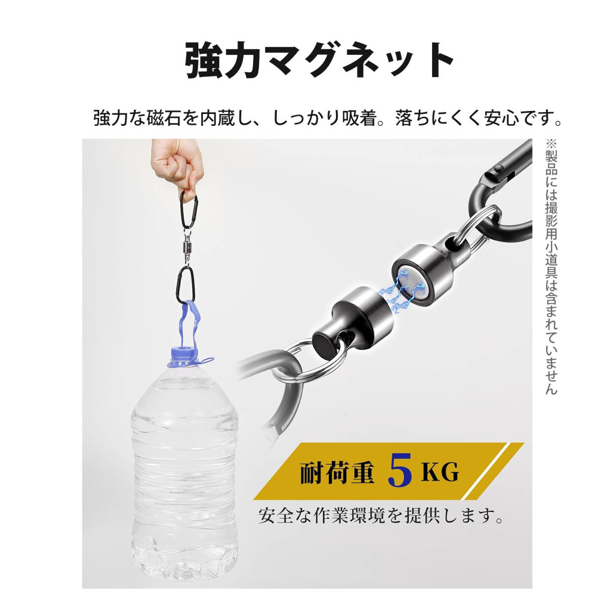 | この商品について | 【驚きの吸着力】:A3鋼とネオジム磁石を採用し、磁力を底部に集中。強力な固定力で落下を防ぎ、重い物もしっかり保持します。 【耐久性と防錆性】:ベースはニッケル・銅・ニッケルの三層電鍍加工で錆びにくく、長期間使用しても輝きを保ちます。 【便利なカラビナ付き】:自動ロック式アルミカラビナを搭載。カバン、ベルト、アウトドアギアに簡単に取り付け可能。 【取り外し可能なキーリング】:柔軟性と耐久性に優れたステンレスキーリング付き。鍵やアクセサリーの整理にも最適。 【幅広い用途】:屋内収納(キッチン・玄関・オフィス)からアウトドア(登山・キャンプ・旅行)まで、多目的に活躍。 |