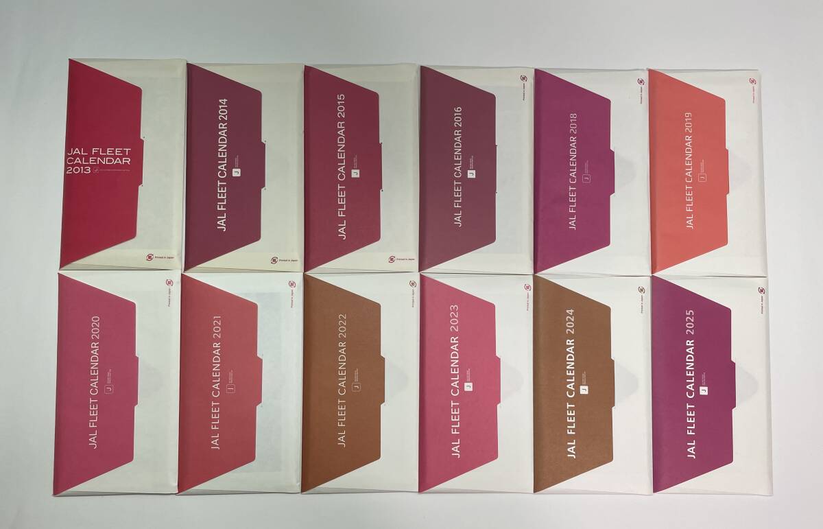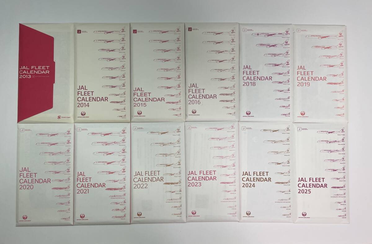 2013年から2025年まで(2017年のみなし)のJAL FLEET 卓上カレンダーです。