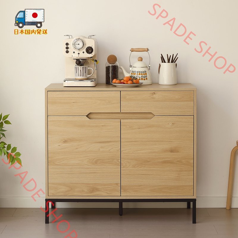 【国内発送】 キャビネット 木製 脚付き 収納棚 チェスト サイドボード リビングボード 引き出し付き 両開き 扉付きシェルフ 【幅90cm】