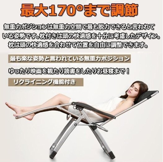 リクライニングチェア リラックスチェア 折りたたみチェア 組立不要 昼休み 昼寝 アウトドア アウトドアチェア ブラック
