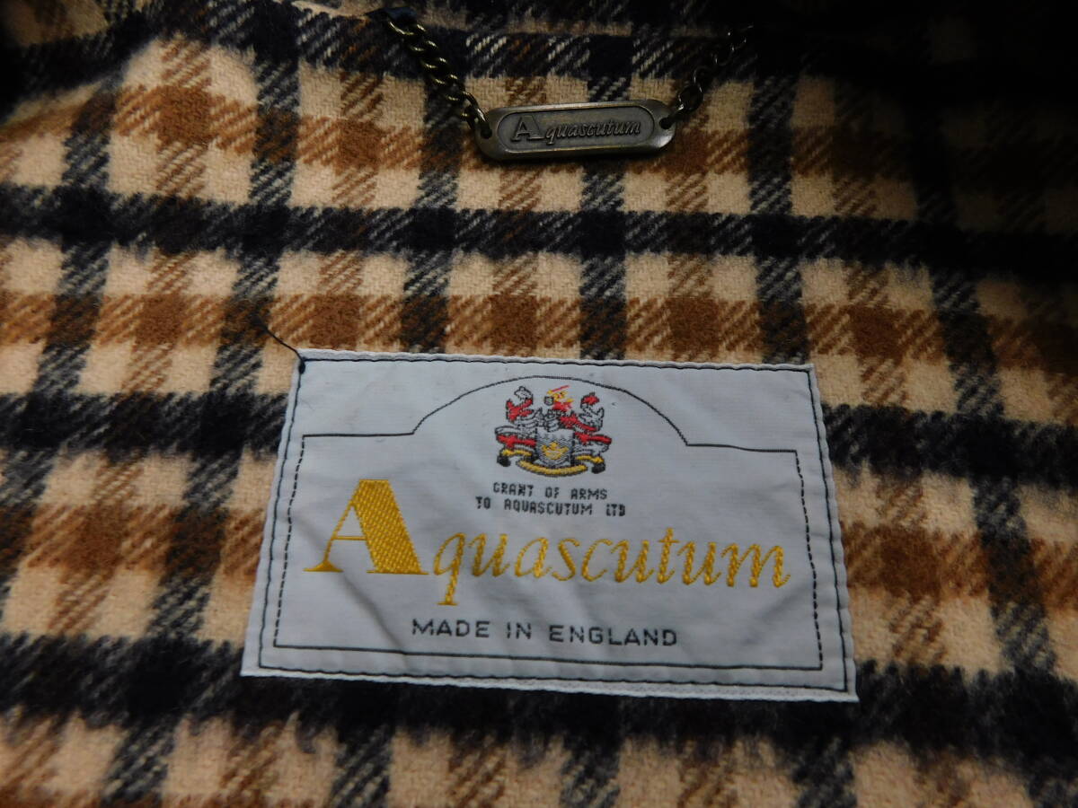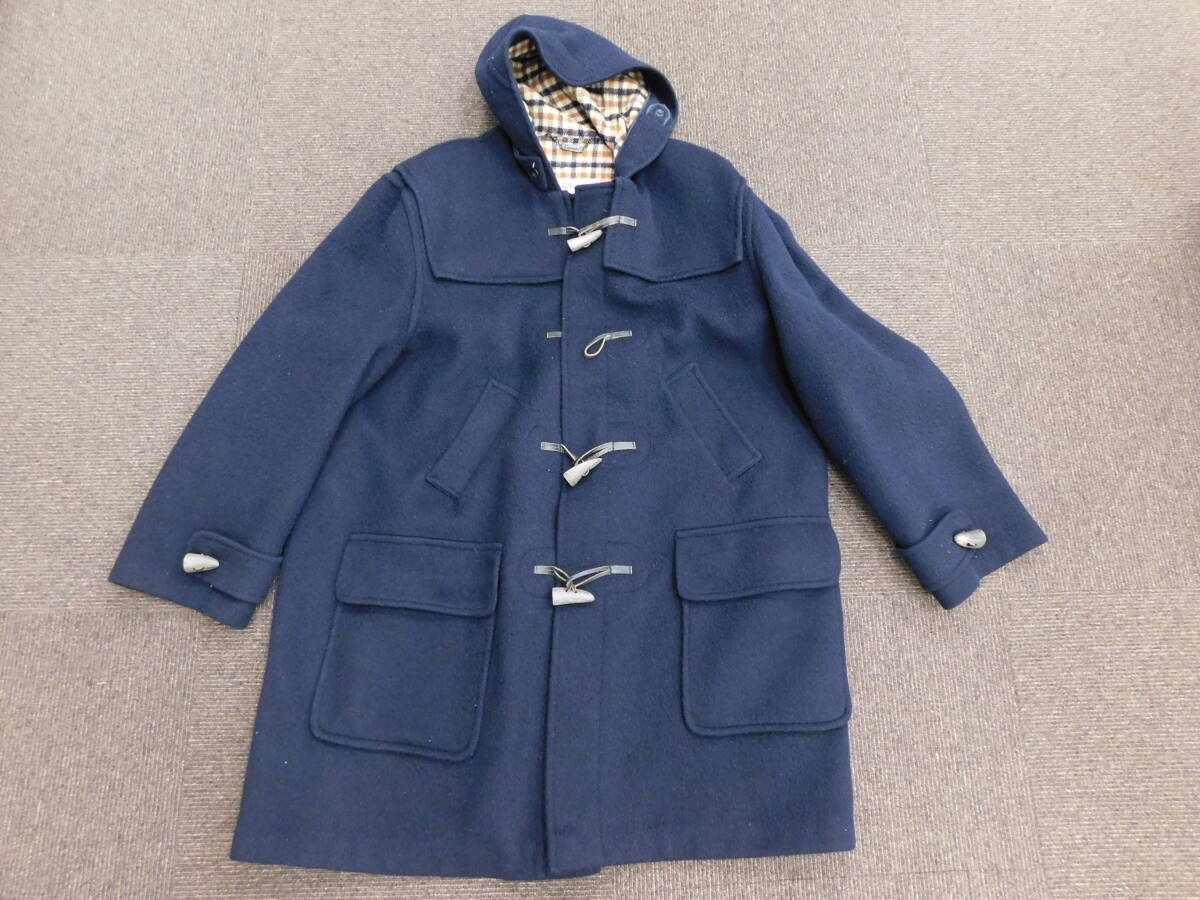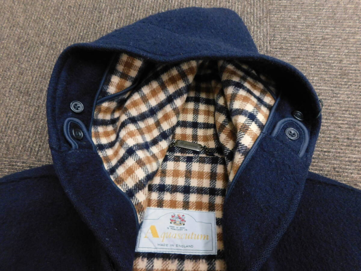 アクアスキュータム コート イギリス製 裏地チェック ダッフルコート ロング ネイビー ボタン欠品 ジャンク品 激安1円スタート