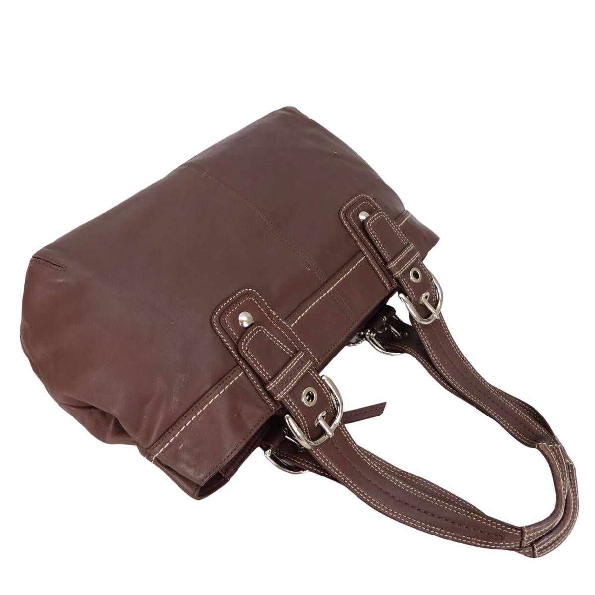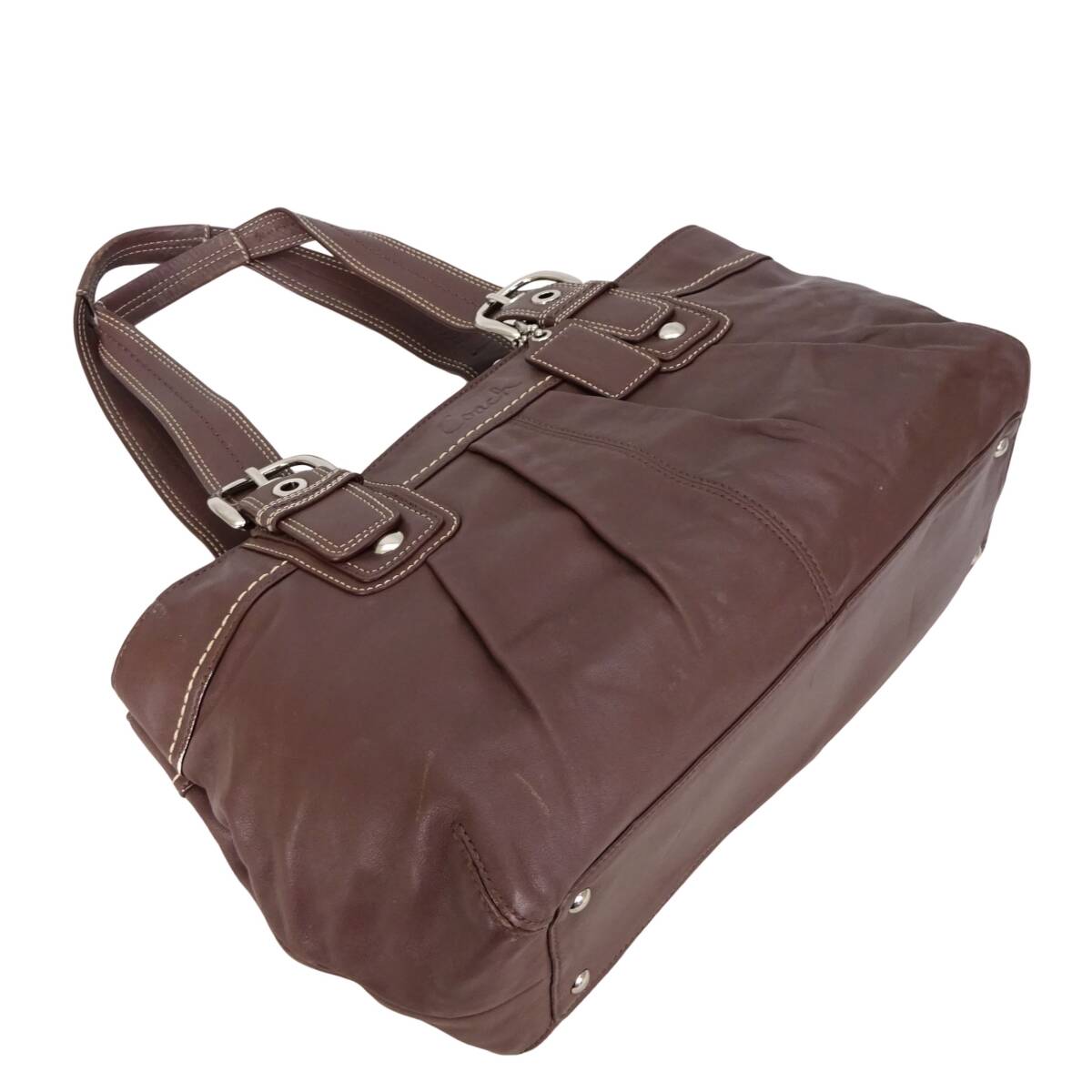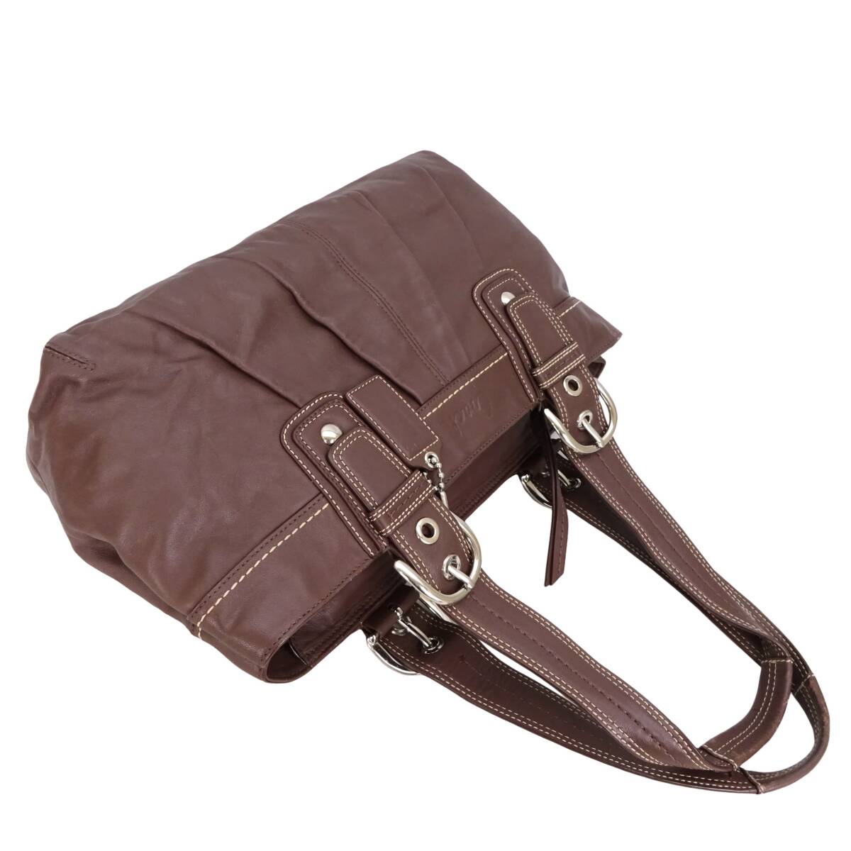 本物■コーチ■ソーホー プリーテッド レザー トート ブラウン パープル ショルダートートバッグ ハンドバッグ /581402