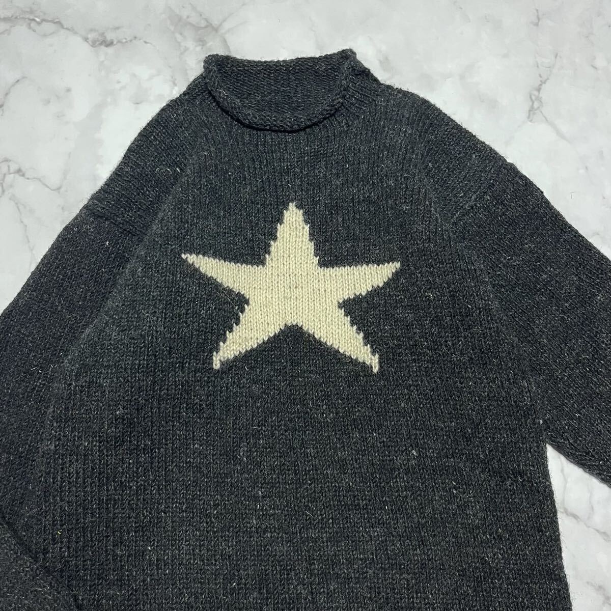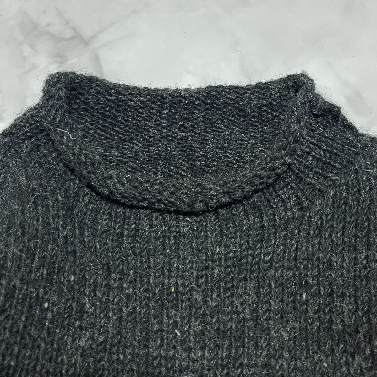 首元はロールネック仕様、裾や袖口もナチュラルにロールしたデザインで、素朴さと個性が調和しています。