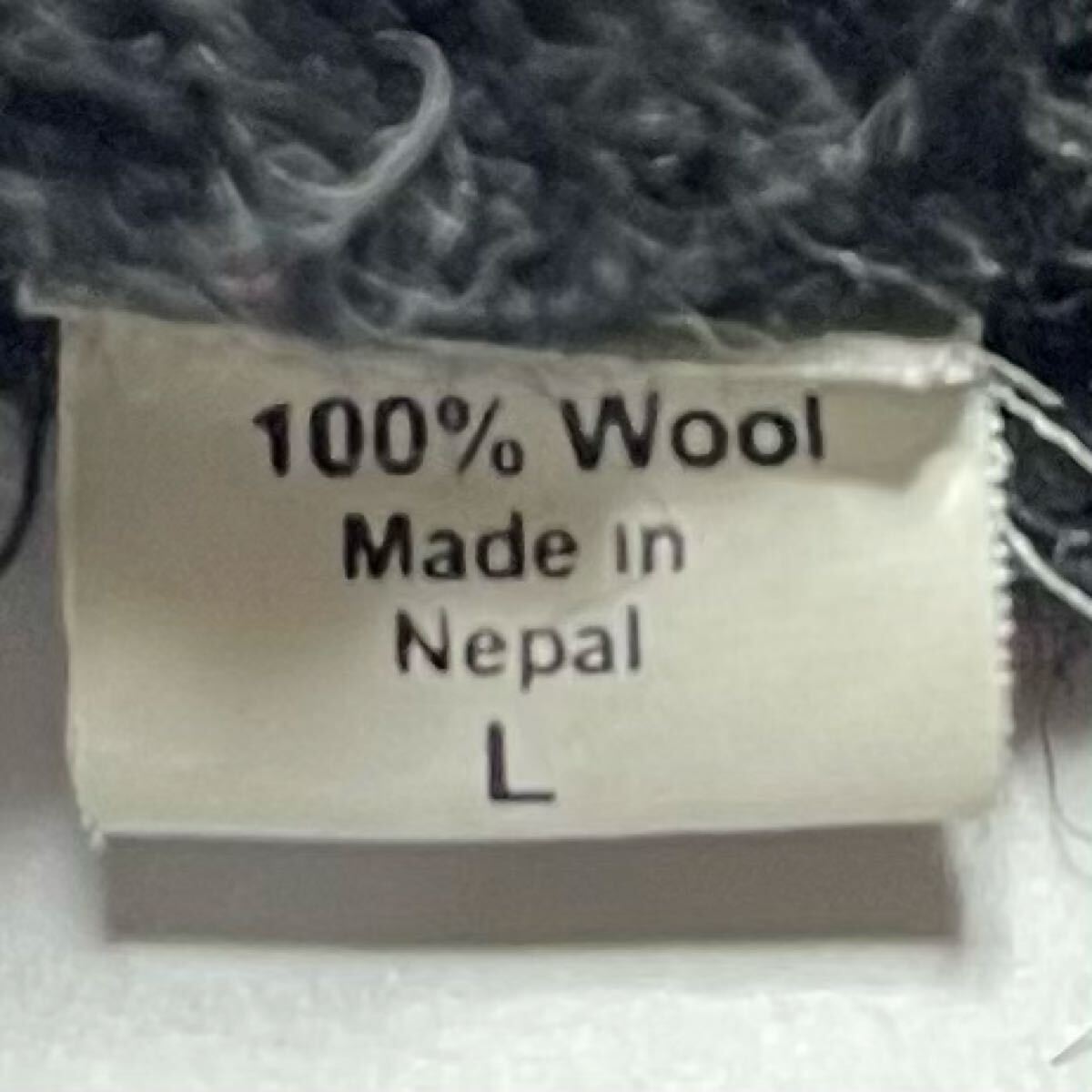 ウール100%の厚手の編地は保温性が高く、ざっくりとした風合いが特徴。