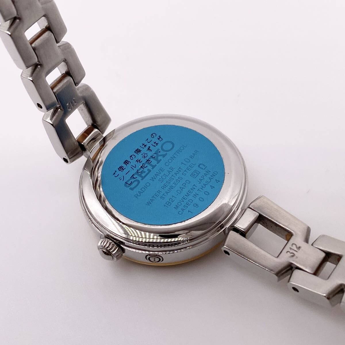 箱付き極美品稼働 1B21-0AP0 腕時計 ソーラー電波 コンビ ダイヤ ビジュー ラウンド ローマン ウォッチ 金属ベルト スチールベルト レディース