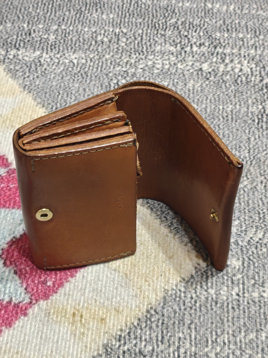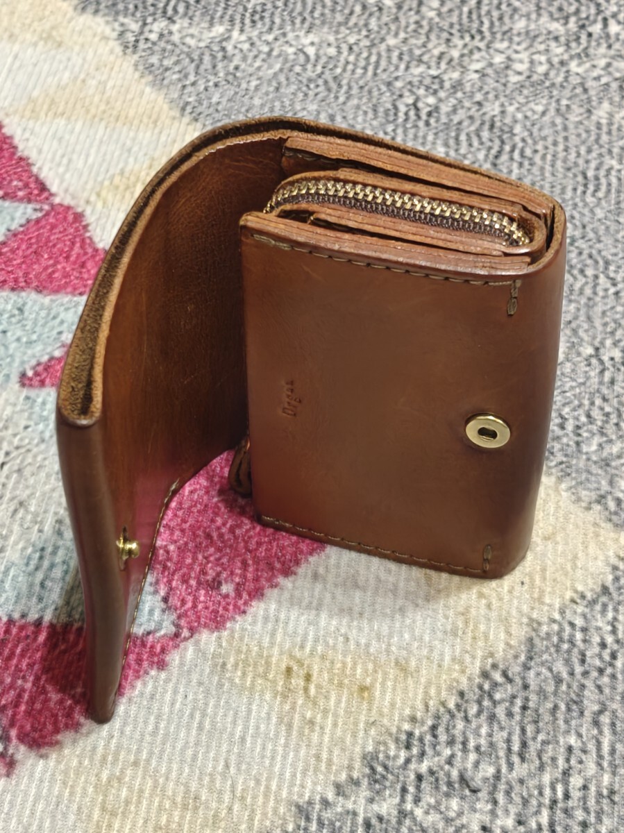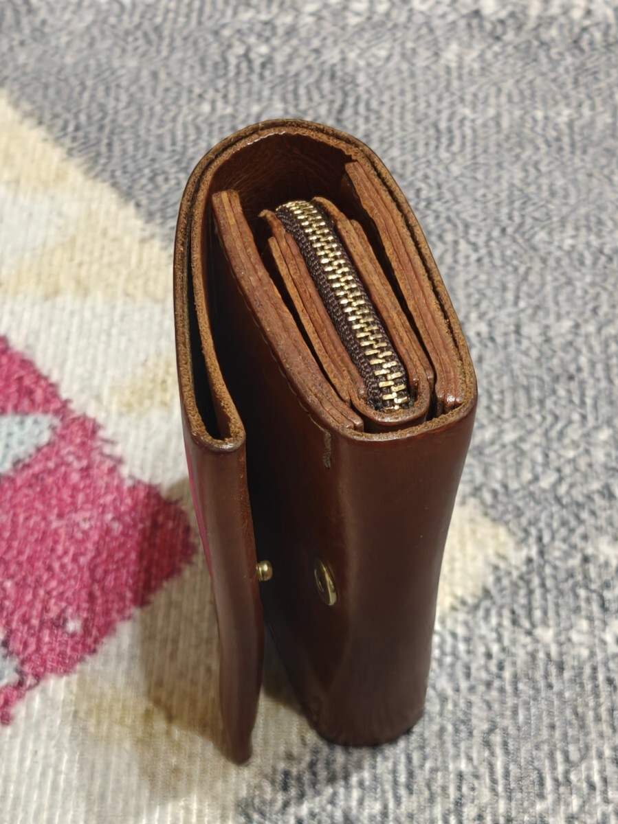 | 商品説明 | HERZ ヘルツ 二つ折り ミニ財布 GS-64 いい感じでやけてきてます。 10月にスナップボタンをヘルツ直営で交換済み。 Organ(オルガン) 「二つ折りミニ財布」 革素材:ミネルバリスシオ 革色:アンバー 価格20900円 サイズ横幅(cm)10高さ(cm)8.5 一見するとシンプルな構造に見えますが、長めに切り出した一枚革で札入れを構成しつつ、小銭入れとカードポケットまでを包んだ贅沢な革の使い方をしています。 最低限に抑えたステッチでプレーンな見た目にアクセントを与えたりと、細部にさりげない凝りが詰め込まれています。 カードポケットと小銭入れにはそれぞれマチが設けられ、小銭や収納物がこぼれ落ちる心配がありません。又、大きく開くことができるので、中も見やすく取り出しもスムーズです。 片手に収まるコンパクトなサイズ感で持ち歩きやすく、メンズ、レディース問わずおすすめです。 |