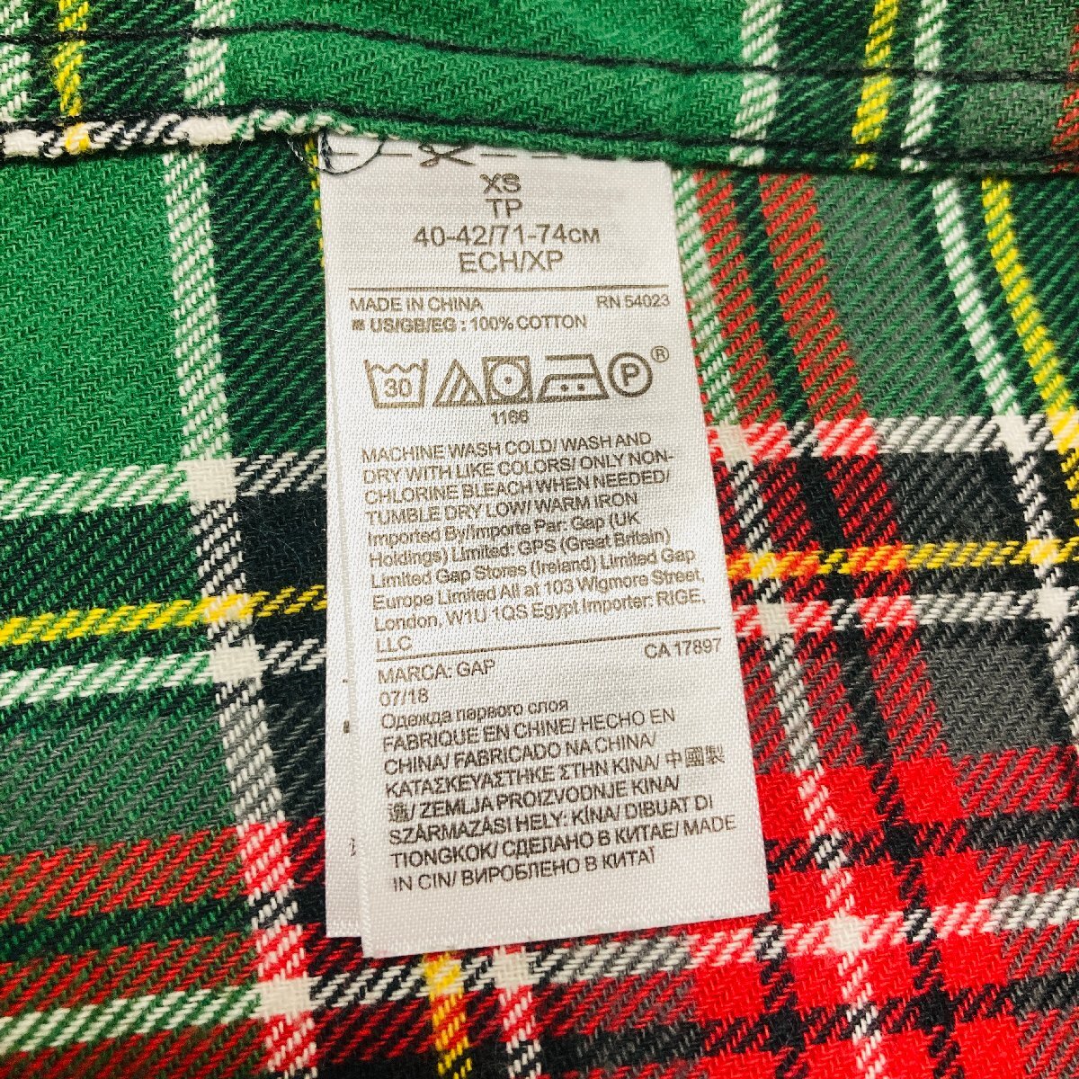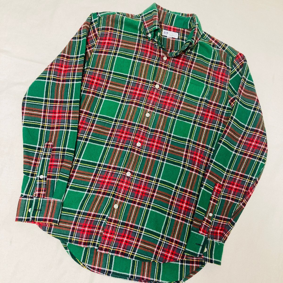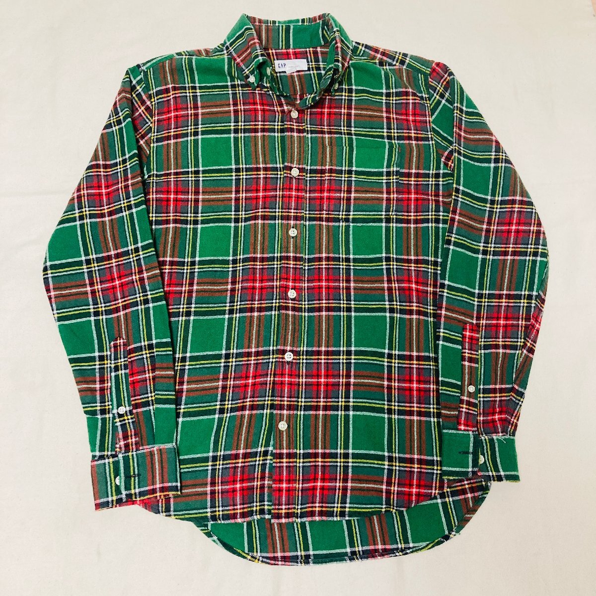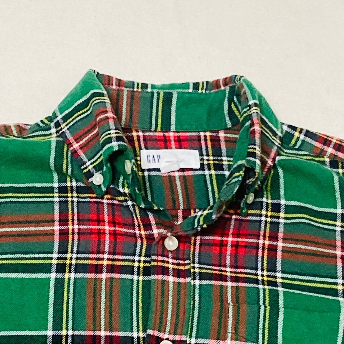 GAP ギャップ STANDARD FIT チェック ボタンダウン ロングスリーブ ネルシャツ グリーン/緑系 XS