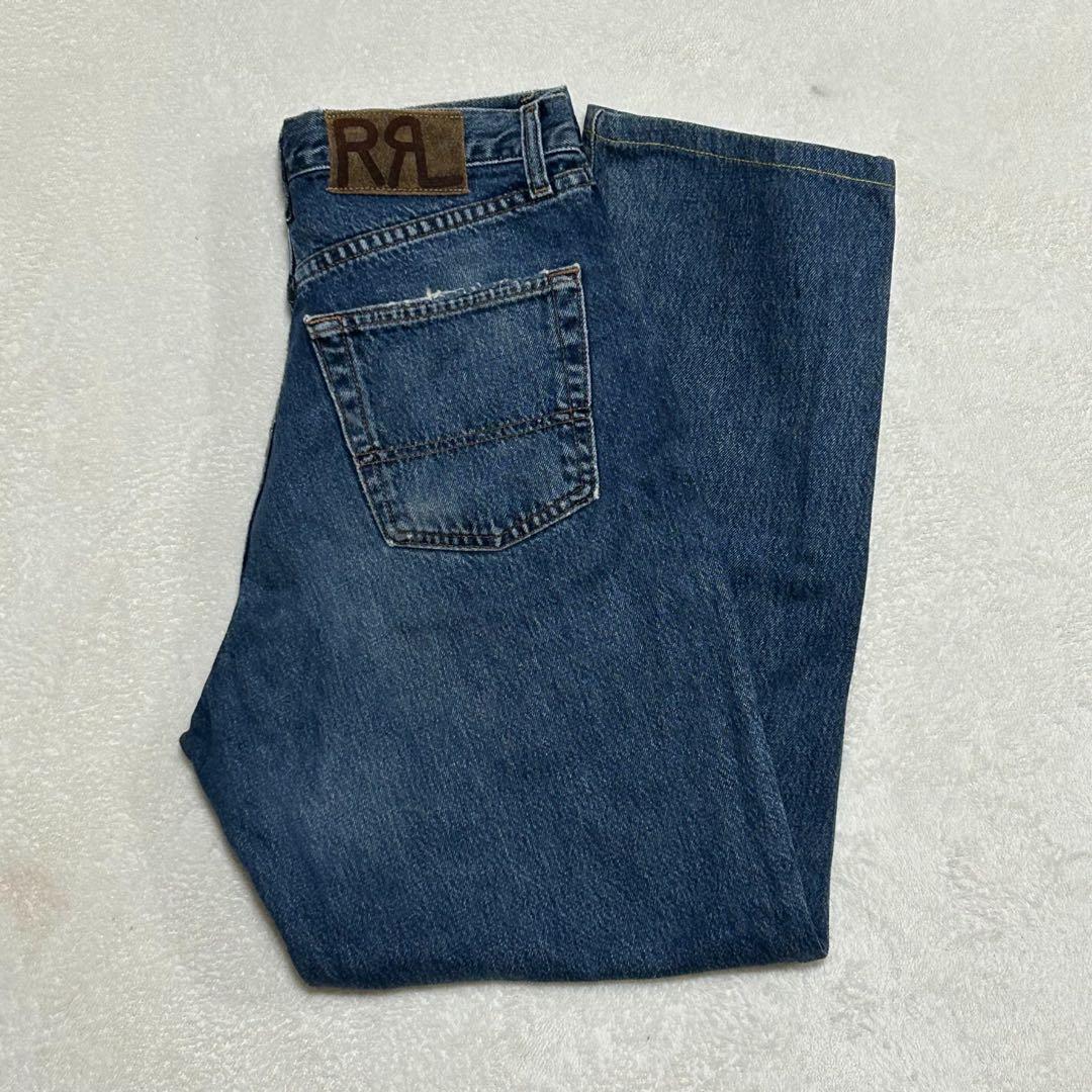 RRL Ralph Lauren ダブルアールエル デニムパンツ ジーンズ ブルー 5ポケット レザーパッチ RRL刻印 ヴィンテージ メンズ アメカジ 1055