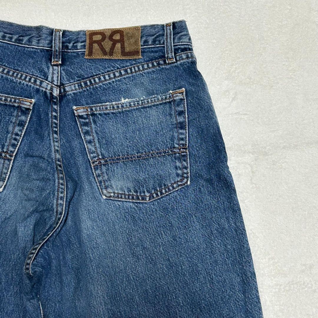 RRL Ralph Lauren ダブルアールエル デニムパンツ ジーンズ ブルー ストレート 5ポケット レザーパッチ RRL刻印 ヴィンテージ加工 メンズ アメカジ 1055