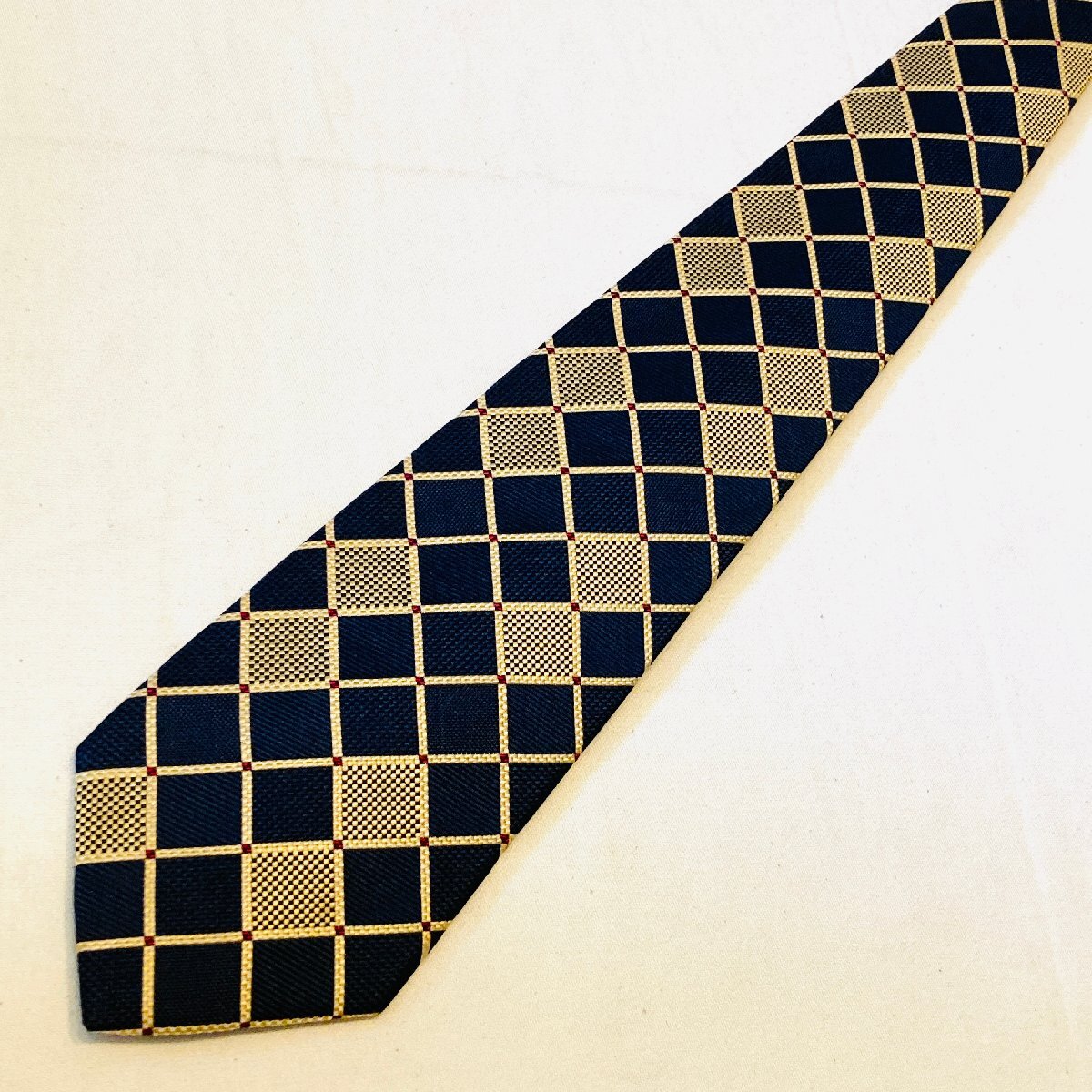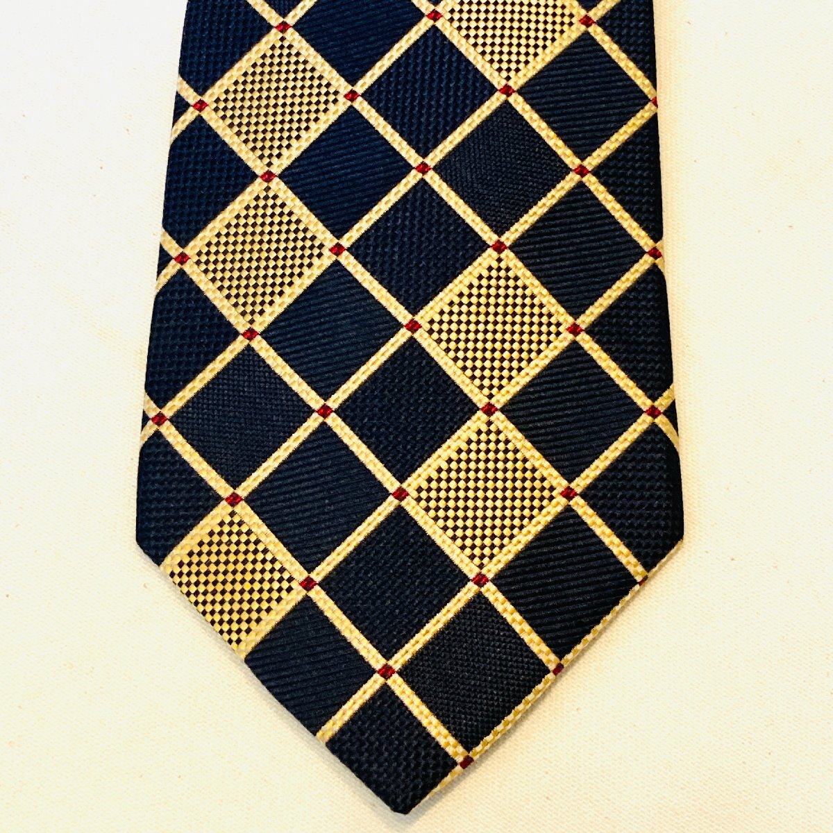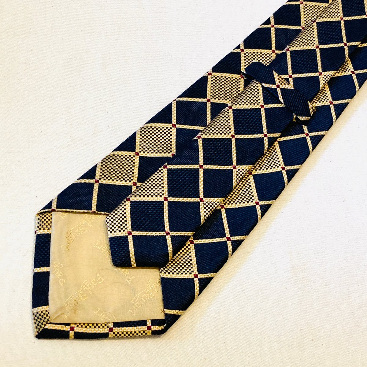Paul Stuart ポールスチュアート 日本製 絹 シルク SILK 100% 高級 ネクタイ ネイビー/ゴールド系 総柄