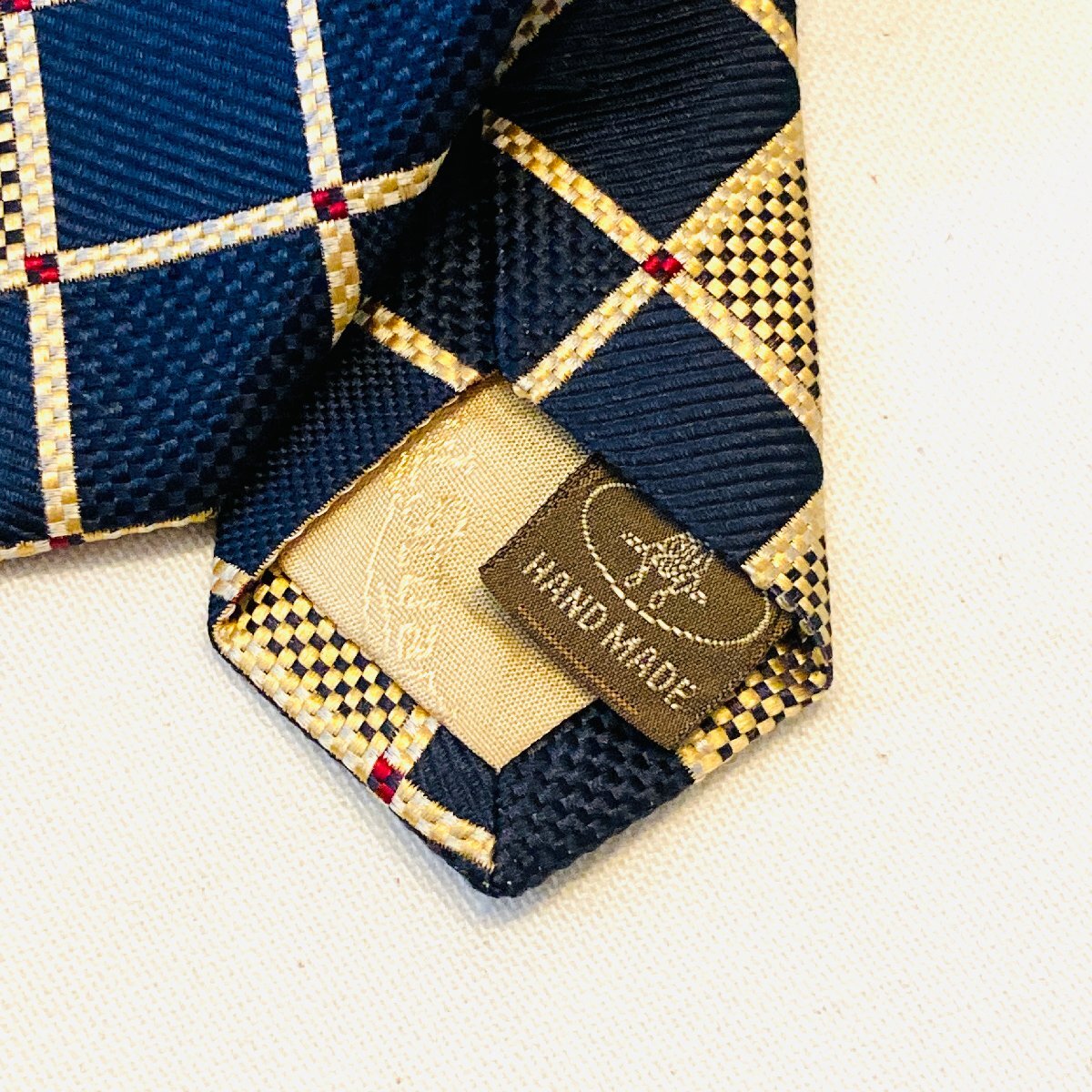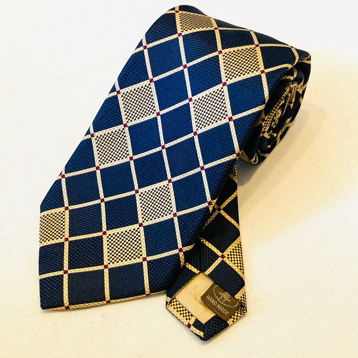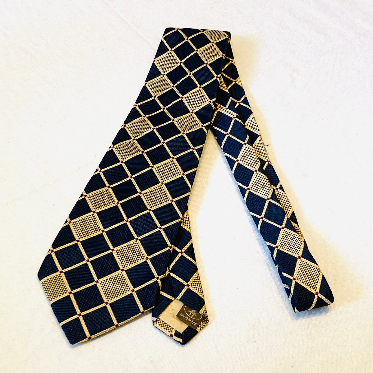 Paul Stuart ポールスチュアート 日本製 絹 シルク SILK 100% 高級 ネクタイ ネイビー/ゴールド系 総柄