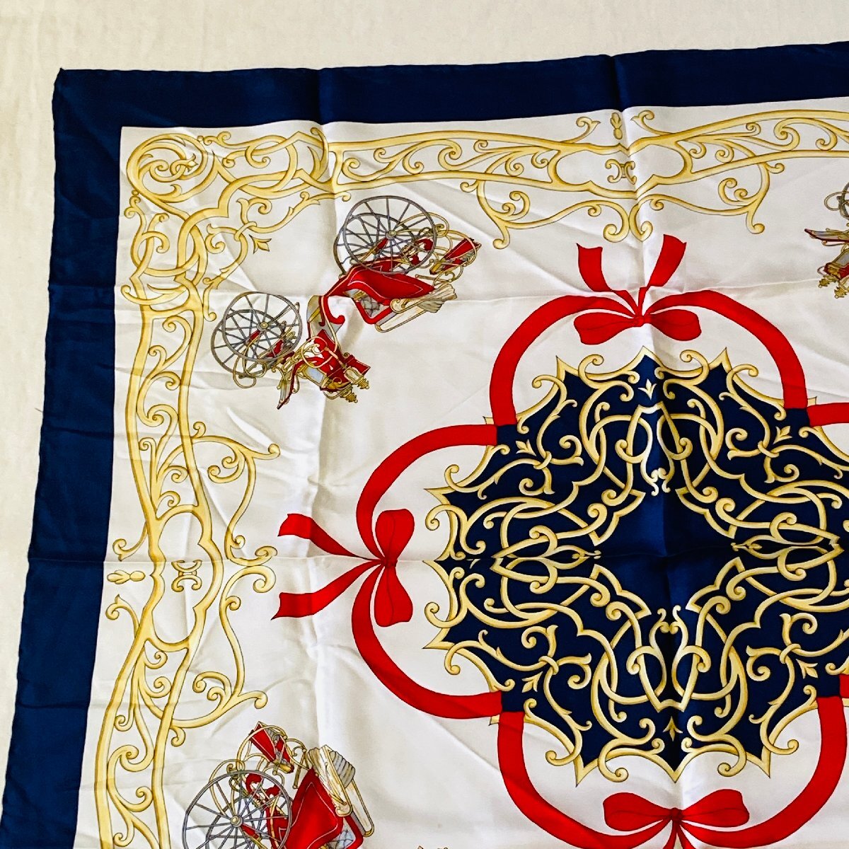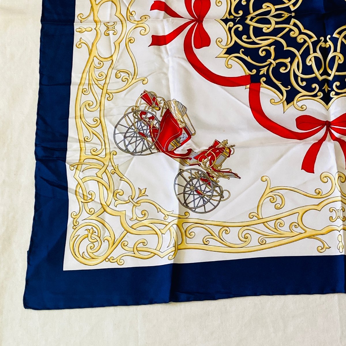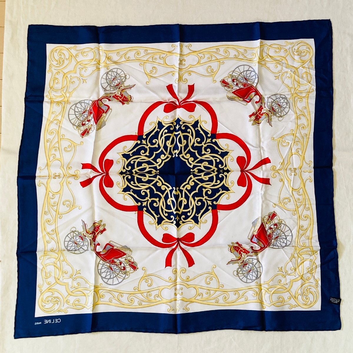 イタリア製 シルク/SILK 100% レディース 大判 スカーフ タグあり 馬車モチーフ【CELINE】