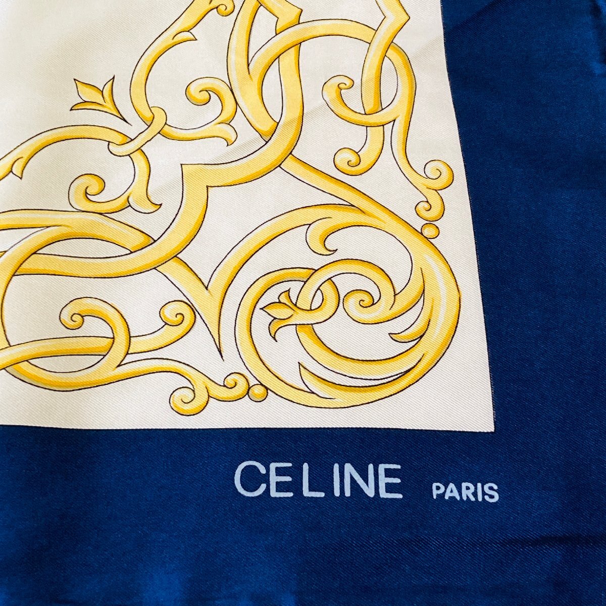 CELINE MADE IN ITALY/イタリア製 シルク/SILK 100% レディース 大判 スカーフ タグあり 馬車モチーフ