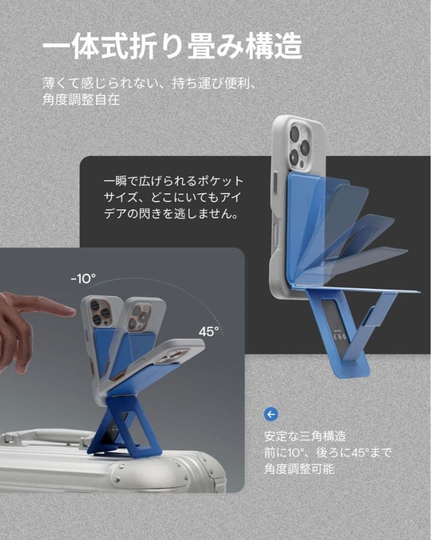 「これがあれば動画撮影がプロ並みになる!」と彼女が手に入れたMOFT公式の「七変化マルチスタンド」、王道のジェットブラックです。 …どうやら「いつでもどこでも立てられる」という安心感だけで満足したのか、未使用のままコレクション入り。 スマホでの撮影やビデオ通話が多い方に、ぜひ! ●商品:MOFT 七変化マルチスタンド - MagSafe対応 ・MOFT Japan正規品、カード収納なしの純粋なスタンドモデルです。 ・色は高級感あふれる定番の「ジェットブラック(漆黒)」。 ・高耐久ヴィーガンレザー「MOVAS」素材。マットな質感が魅力です。 ・MagSafeでiPhoneに強力吸着。 ・特許取得の一体式折り畳み構造で、最大約20cmの高さまでスマホを設置可能!三脚として動画撮影やビデオ会議、ライブ配信で大活躍します。 ・多角度に調整可能で、目線の高さで使えるため姿勢改善にも。 ・折り畳めば厚さ約0.74cmのカードサイズで超薄型。 ・新品未使用です。 ●状態:新品未使用。 ●カラー:ジェットブラック(漆黒、写真参照) ●素材:MOVASヴィーガンレザー、グラスファイバー、マグネット等 ●対応機種:iPhone 12~16全シリーズ(MagSafe対応)。MagSafeケース等で他機種も使用可能です。 実物の写真は5枚目以降になります。説明と異なる場合がありますので、必ず写真をご確認ください。不明点はコメントくださいませ。 訳あり品のため、箱潰れ・ビニール破れ・開封痕・指紋などがある場合がございます。簡易検品のため、使用感や部品不足を見落としている可能性もあります。 完品をお求めの方はご希望に添えない場合がございます。 Amazon参考価格:5780円 即日発送(最安発送方法に変更あり) フォロー+購入希望コメントで100円お値引き ご購入前にプロフィールをご確認ください。 管理番号3 |