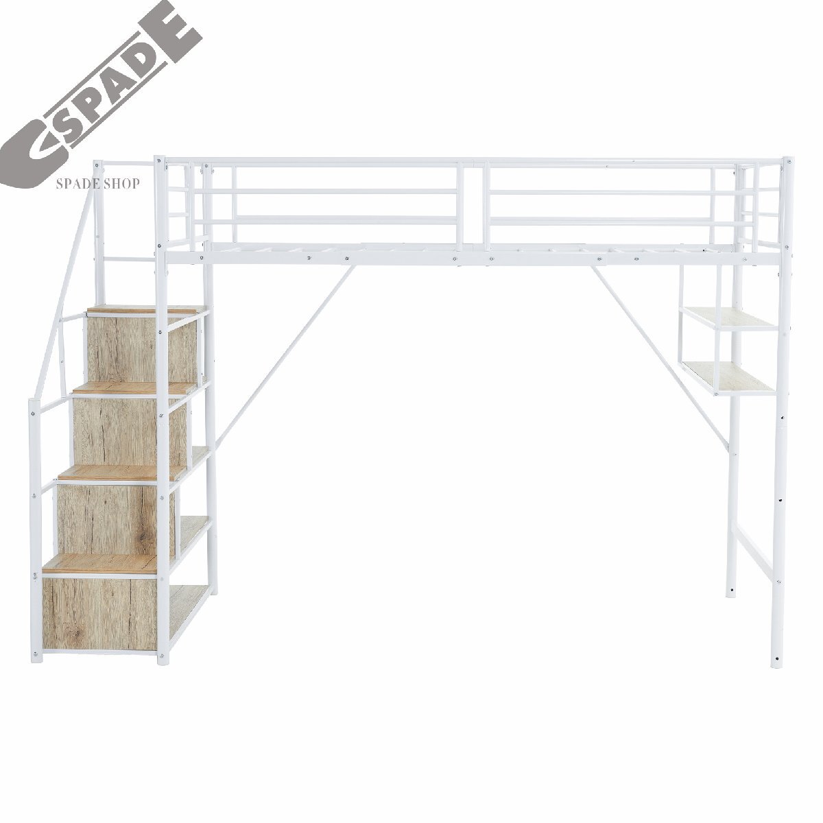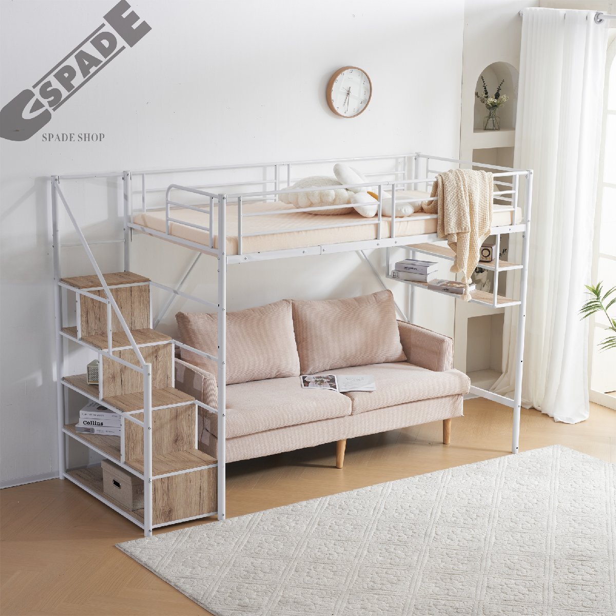 3.置物棚付きのロフトベッドは追加の収納スペースを提供します。本や文房具、スマホ、メガネ、目覚まし時計などの小物もなどを整理整頓できます。快適な寝室環境を作り出し、必要なアイテムを手元に置いて便利に使えます。