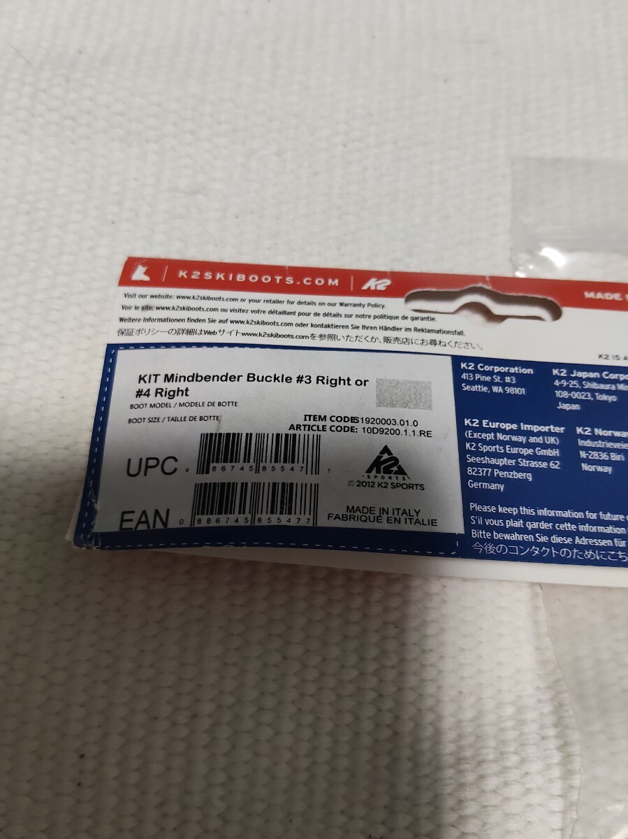 K2のマインドベンダー用のバックルです。右脚の第3第4用。未使用。一度開封しています。1個。ノークレームノーリターンでお願いします。