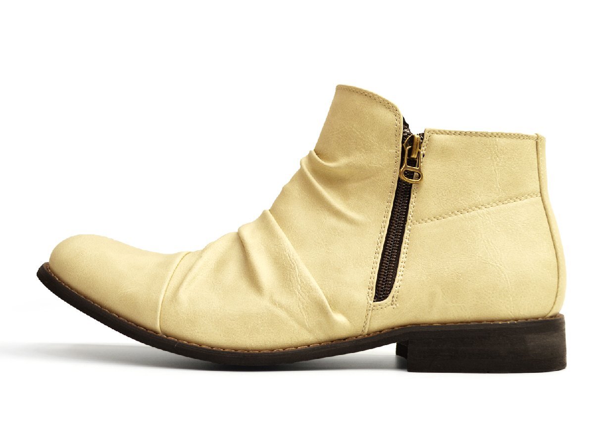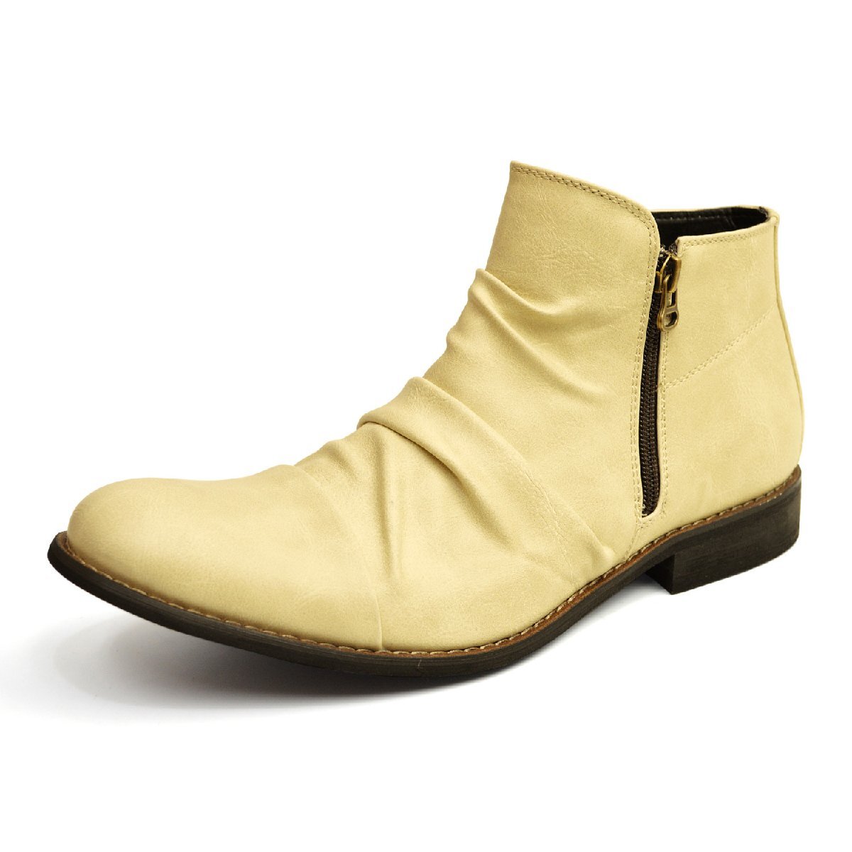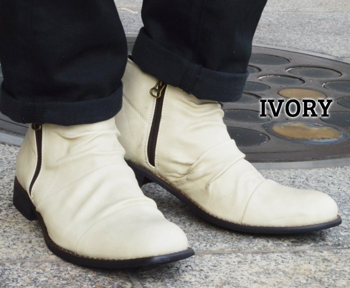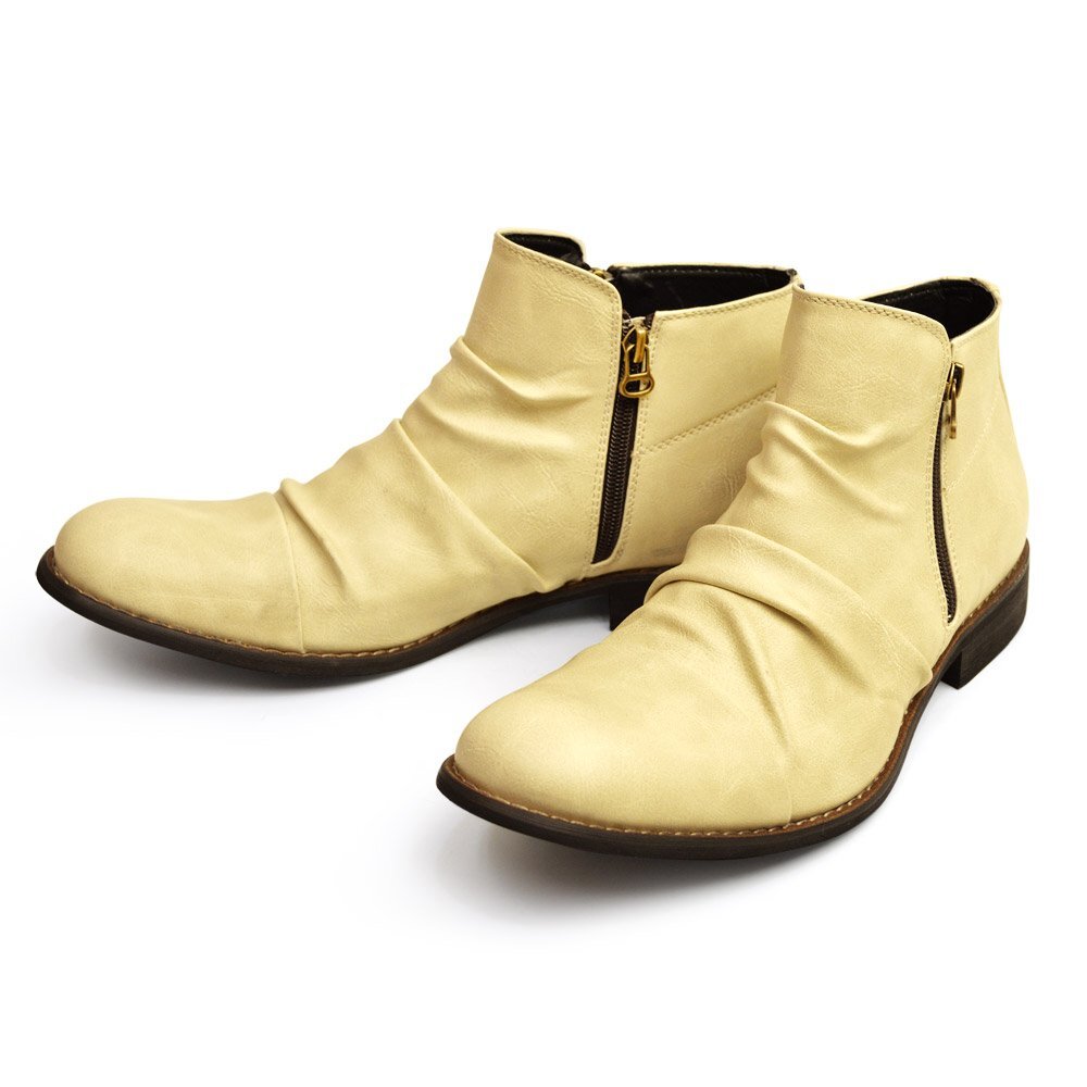 新品■ Wサイドジッパー ドレープブーツ Men's アンティーク ブーツ ショート丈 アンクル丈 メンズ キレイめ ビンテージ 男 靴 ze2789