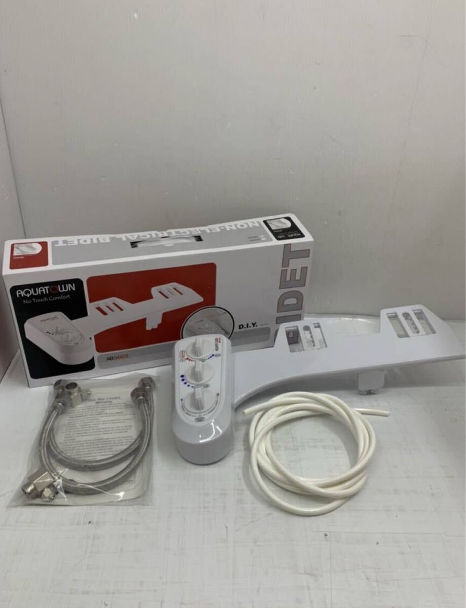電源不要トイレに設置できる簡易ウォシュレットAQUATOWN AB5002 (開封未使用品)です。家の立替の仮住まい用に購入いたしましたが、使用しませんでしたので出品致します。詳細は購入した、サイトをご覧になってください。 https://www.amazon.co.jp/AQUATOWN-電源不要%EF%BC%81トイレに設置できる簡易ウォシュレット