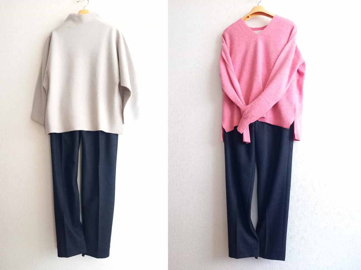 オン/オフ使え、合わせる色も選ばず着回しの効く濃紺です。