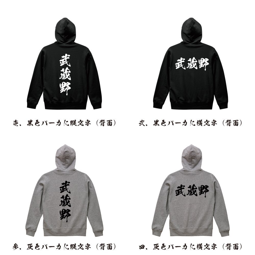 武蔵野 オリジナル パーカ 書道家が書く プリント フルジップ パーカー S M L XL XXL 110 130 150 【 東京 】