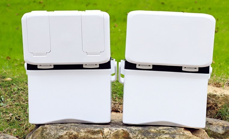 釣り用 クーラーボックス 小型22L ふた両開き 座れる頑丈ボディ 防水 保温保冷 ハンドル/肩ベルト付き 保冷力24-48h ホワイト