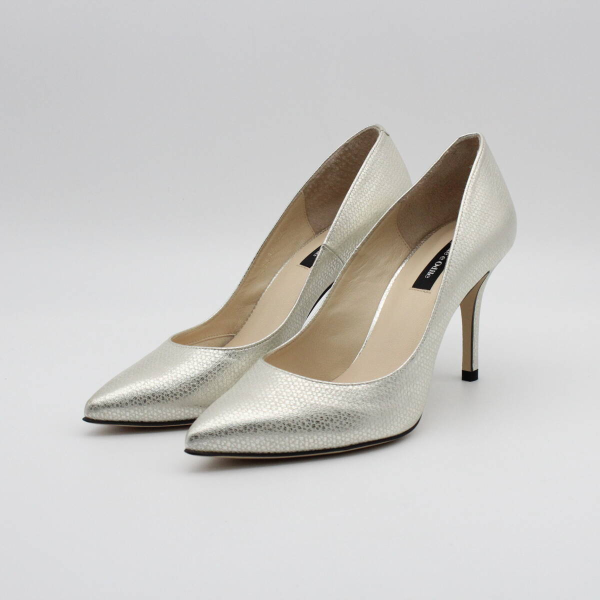 洗練されたシルエットが目を引く8.5cmヒールのポインテッドトゥパンプス。美フォルムにこだわり抜いたパンプスは美脚効果も抜群です。履き心地からシルエットまで自信を持ってオススメいたします。つま先の内側には厚さ3mmのスポンジ(緩衛材)を入れ足あたりをソフトにしています。快適な美脚パンプスを是非お試しくださいませ。