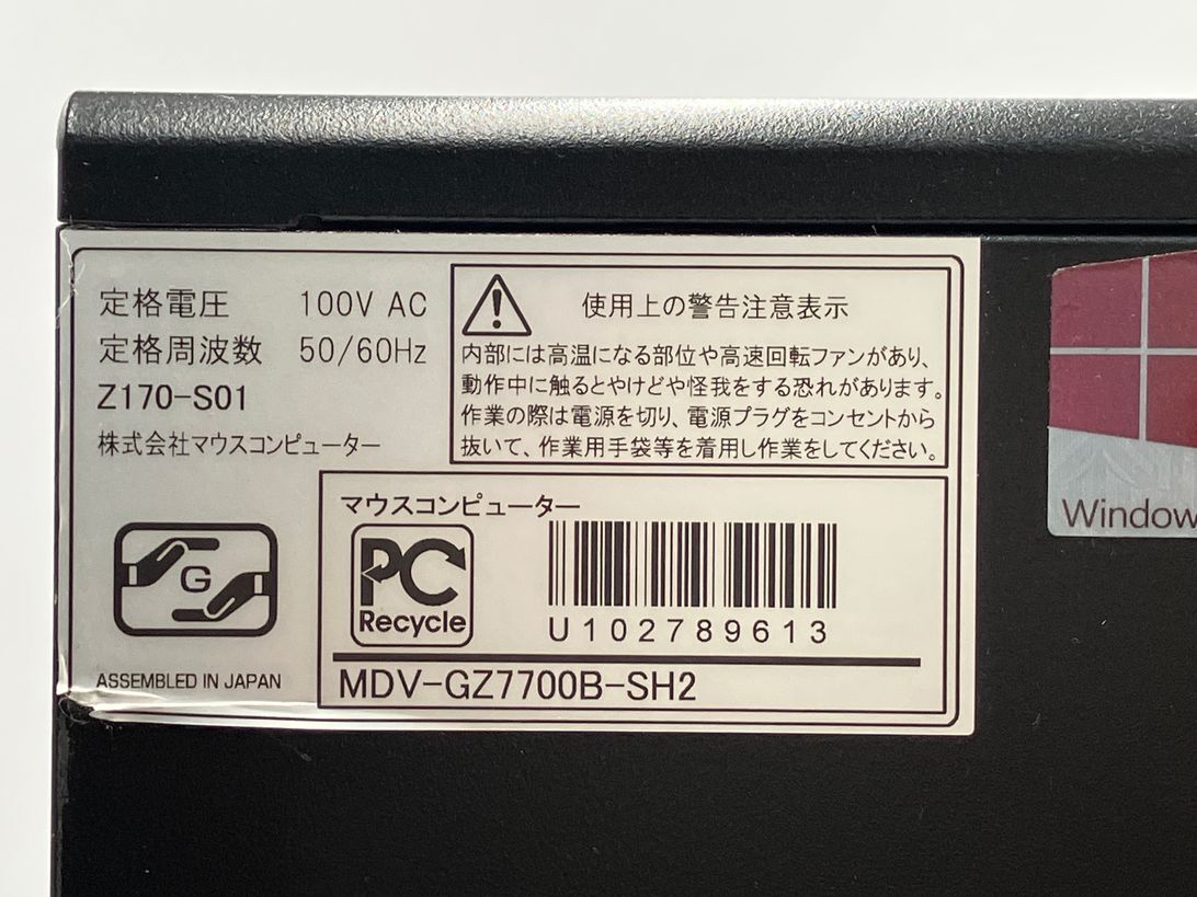 MOUSE COMPUTER/デスクトップ/HDD 2000GB/SSD 240GB/第6世代Core i7/メモリ8GB/8GB/WEBカメラ無/OS無