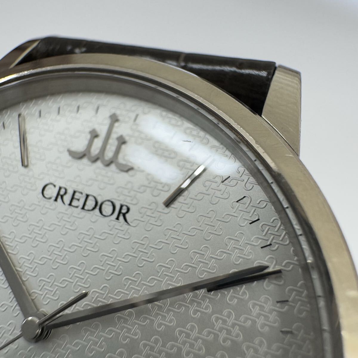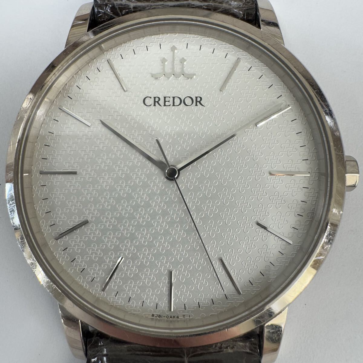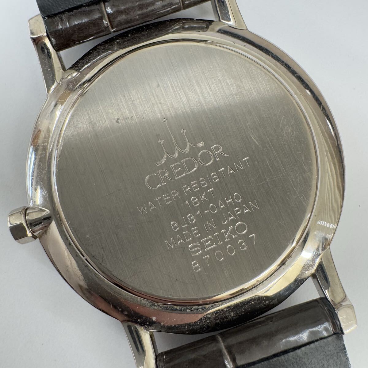 ★SEIKO セイコー CREDOR クレドール メンズ 腕時計 8J81-0AH0 クォーツ 稼働 シルバー文字盤 18KT レザー ベルト社外製 中古品 OB1440