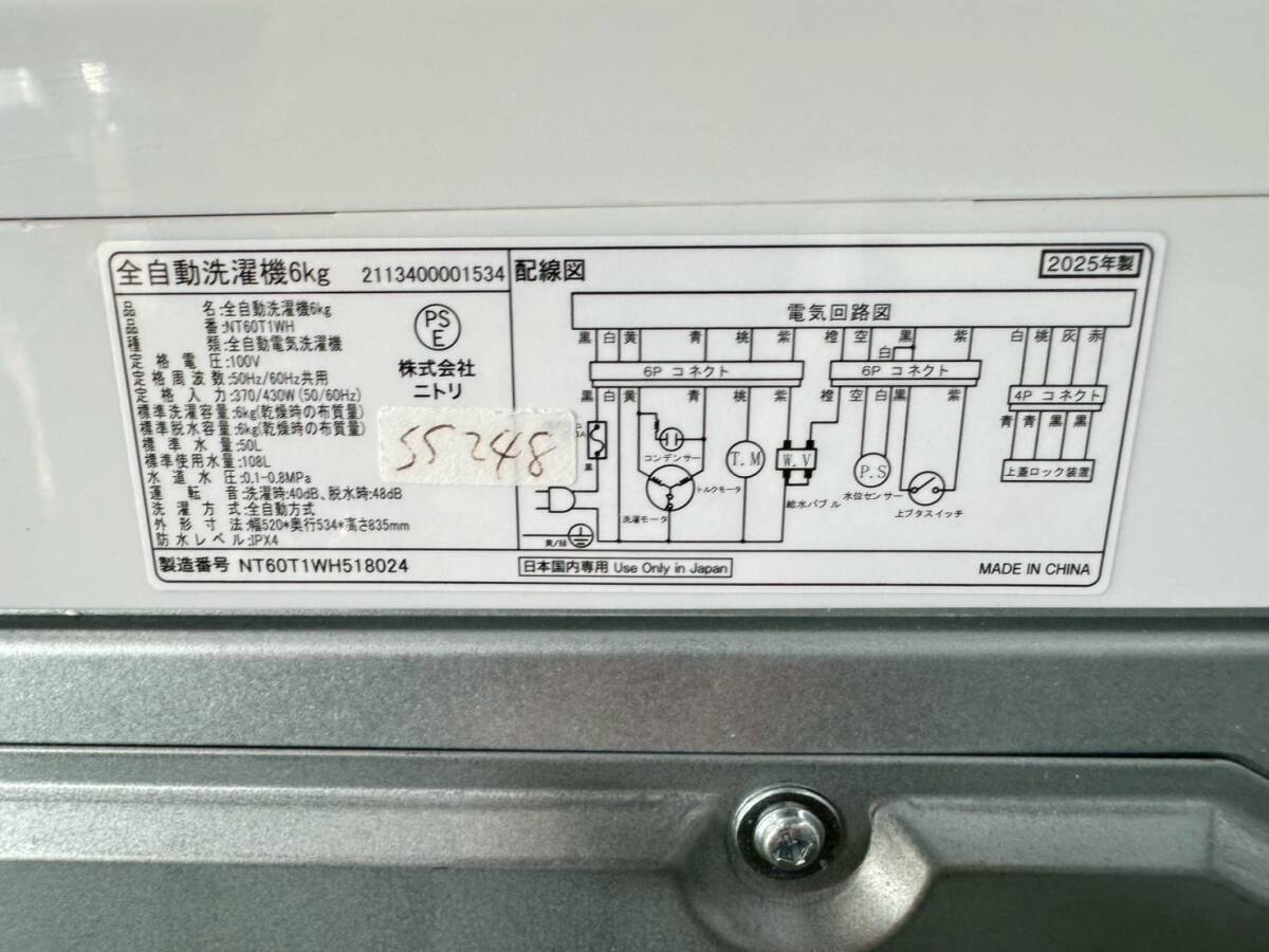【高年式】大阪送料無料★3か月保障付き★洗濯機★ニトリ★6kg★2025年★NT60T1WH★SS-248