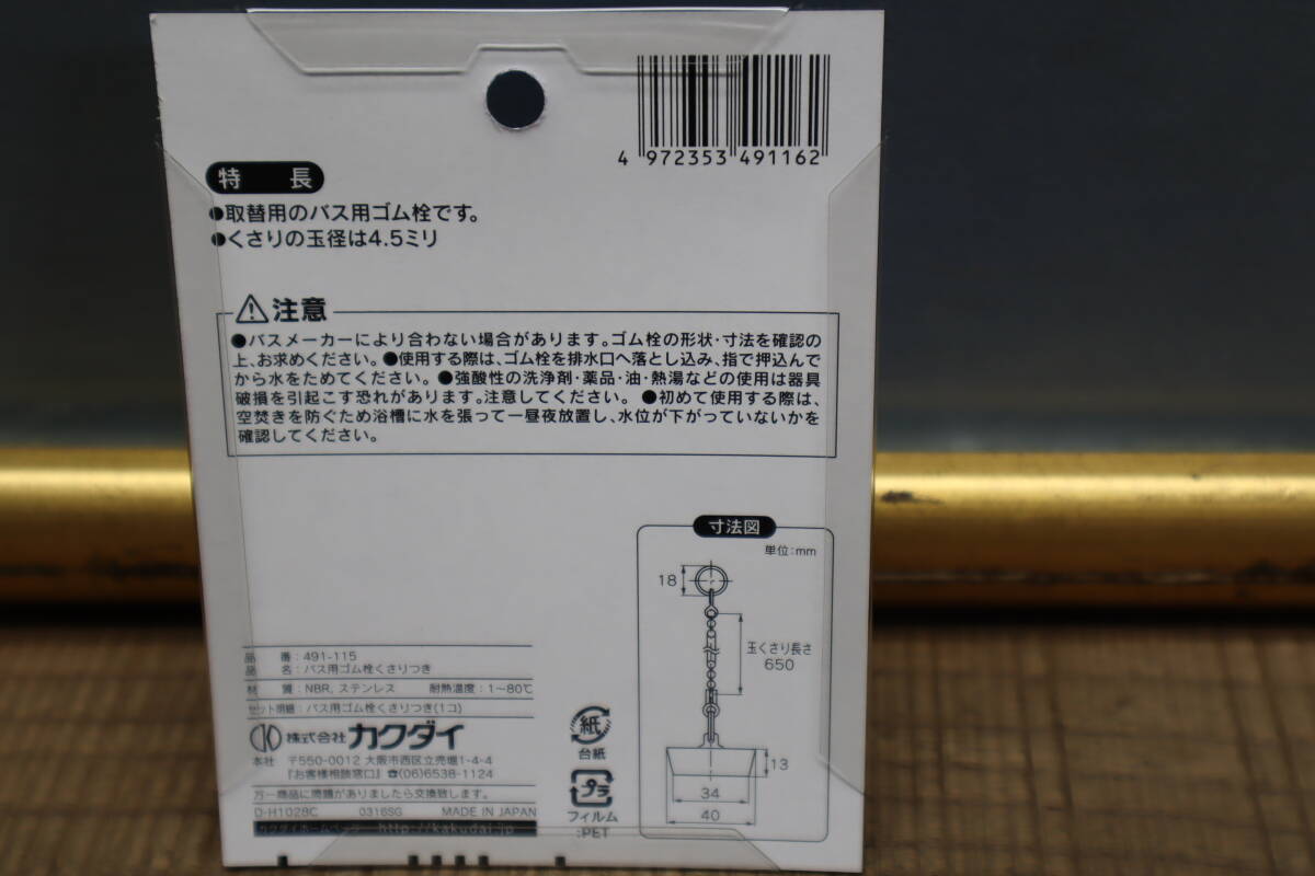 カクダイ バス用ゴム栓くさりつき 排水口径39ミリ用 491-115 10個セット 即決価格 | |||