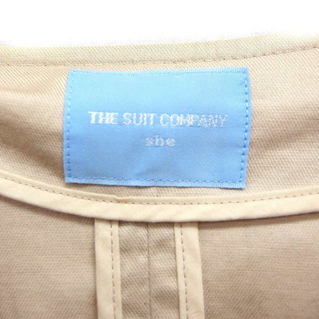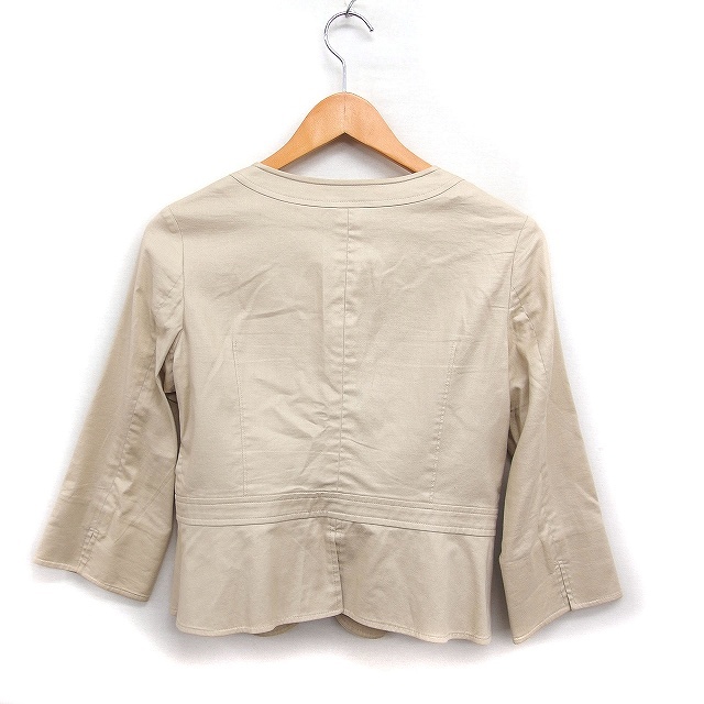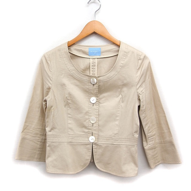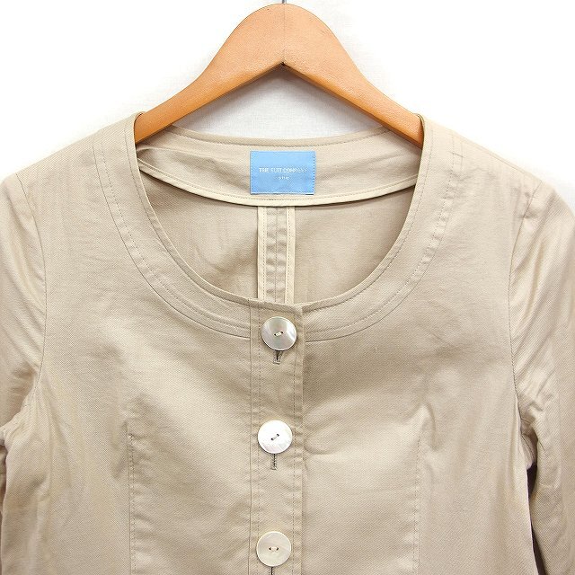 ザ・スーツカンパニー THE SUIT COMPANY ノーカラー ジャケット 7分袖 無地 リネン混 コットン 綿 40 ベージュ /FT49 レディース