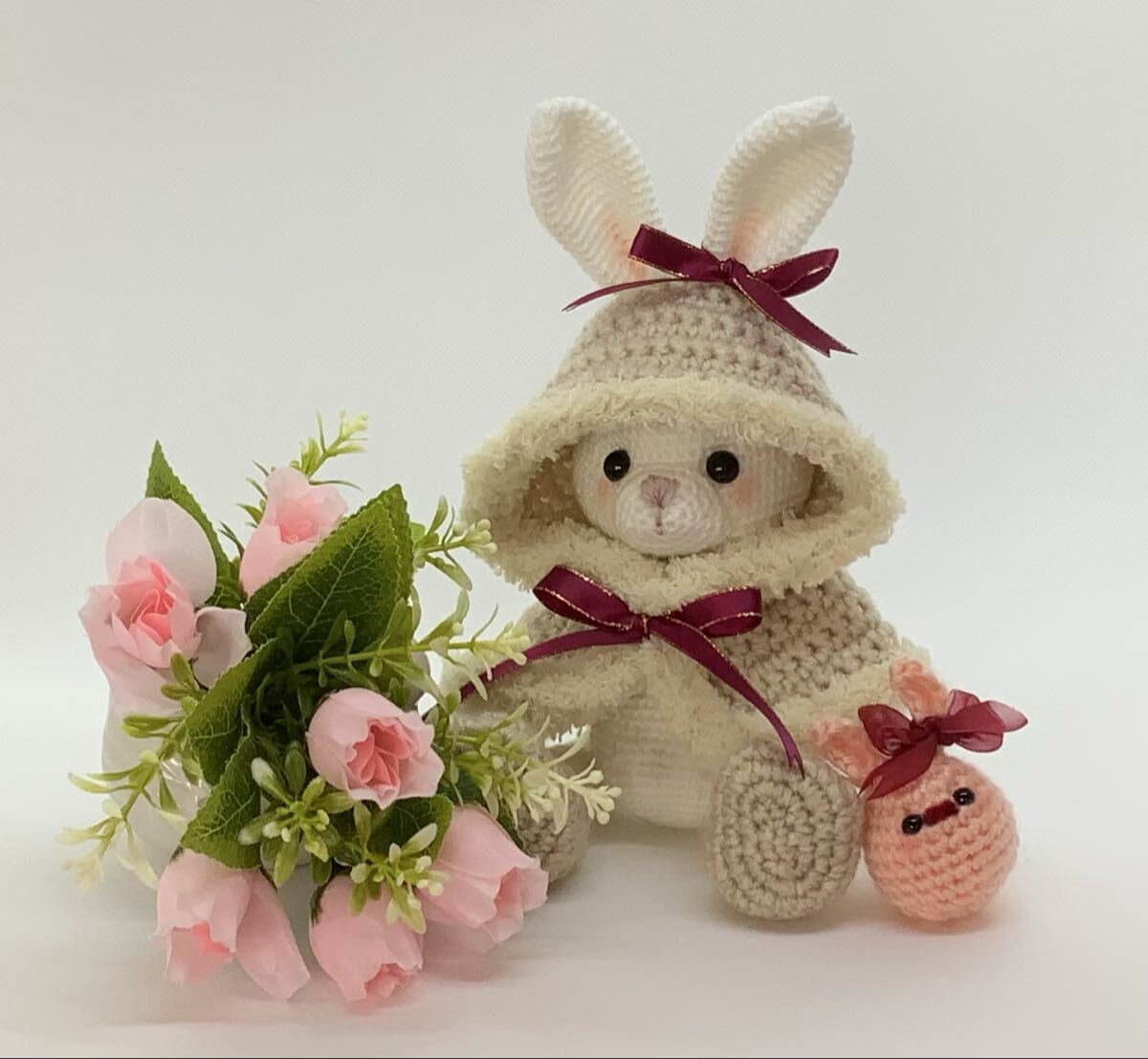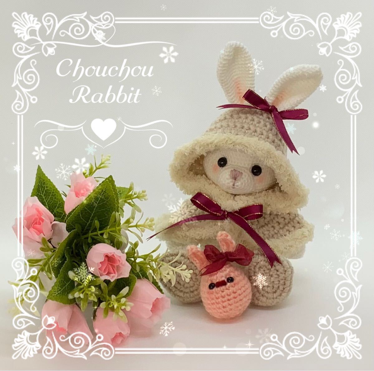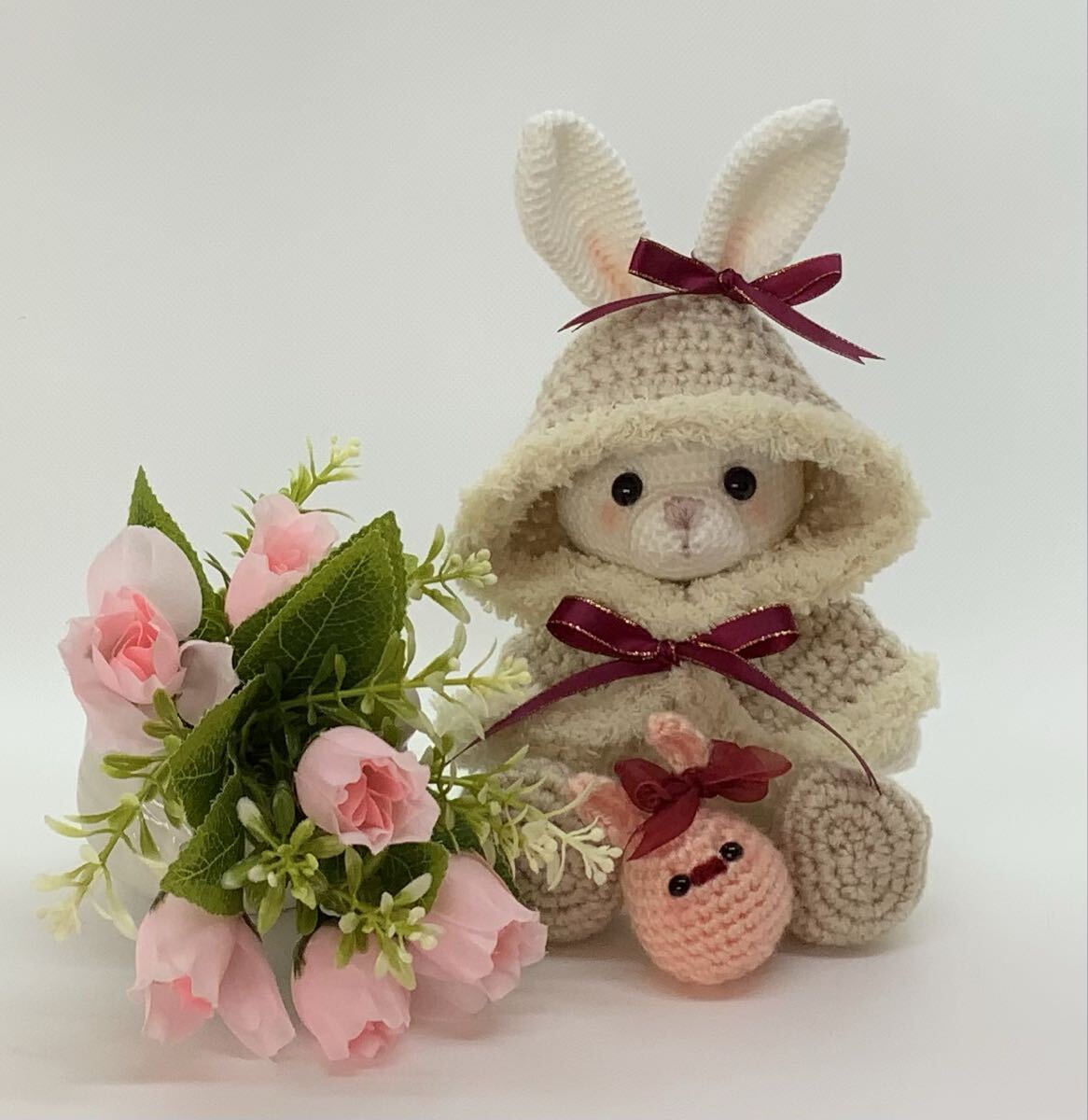 ☆小さいうさぎさん。ベージュのボア付きマントとブーツ☆ピンクのミニうさぎ?さんも一緒です♪
