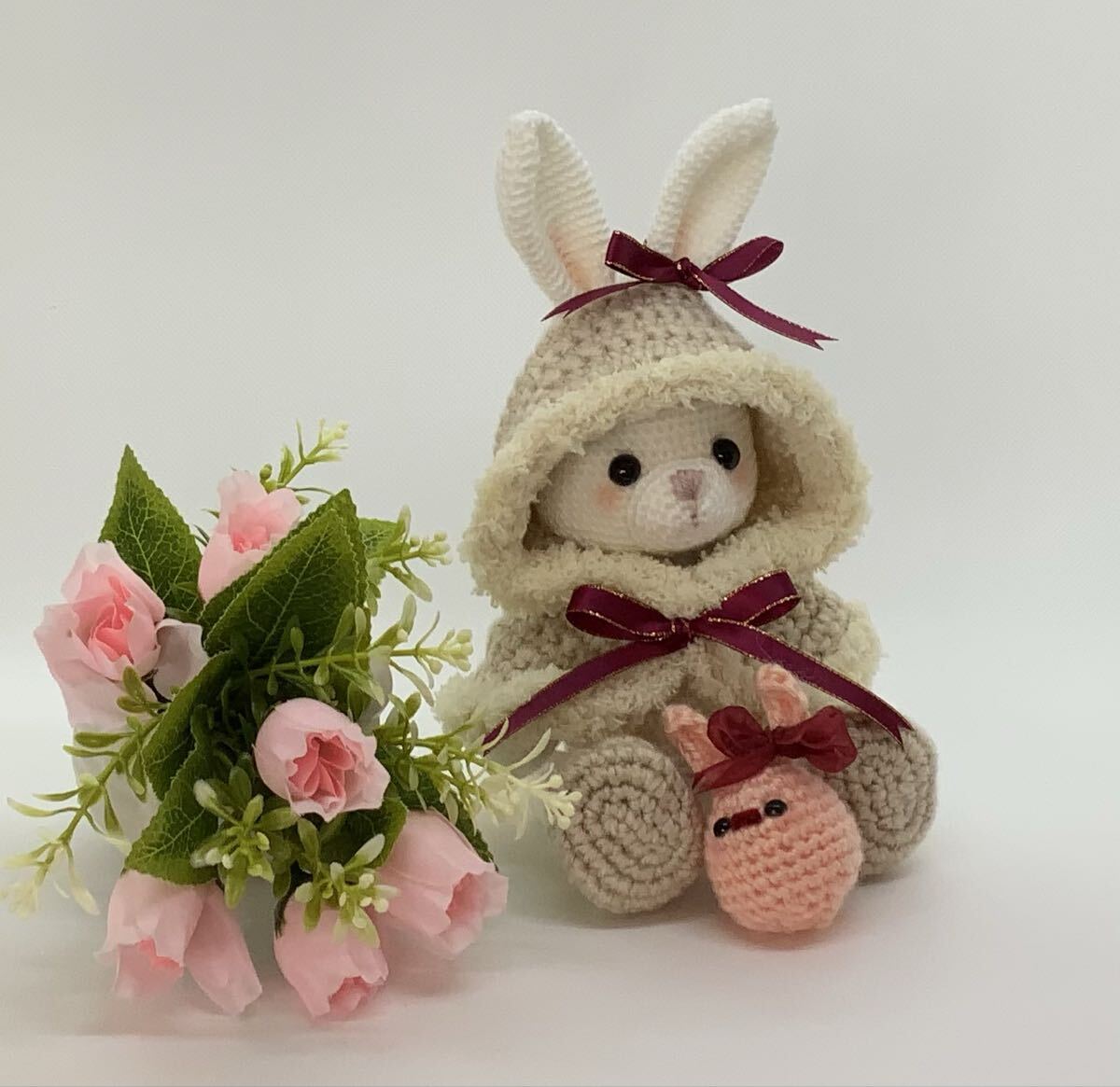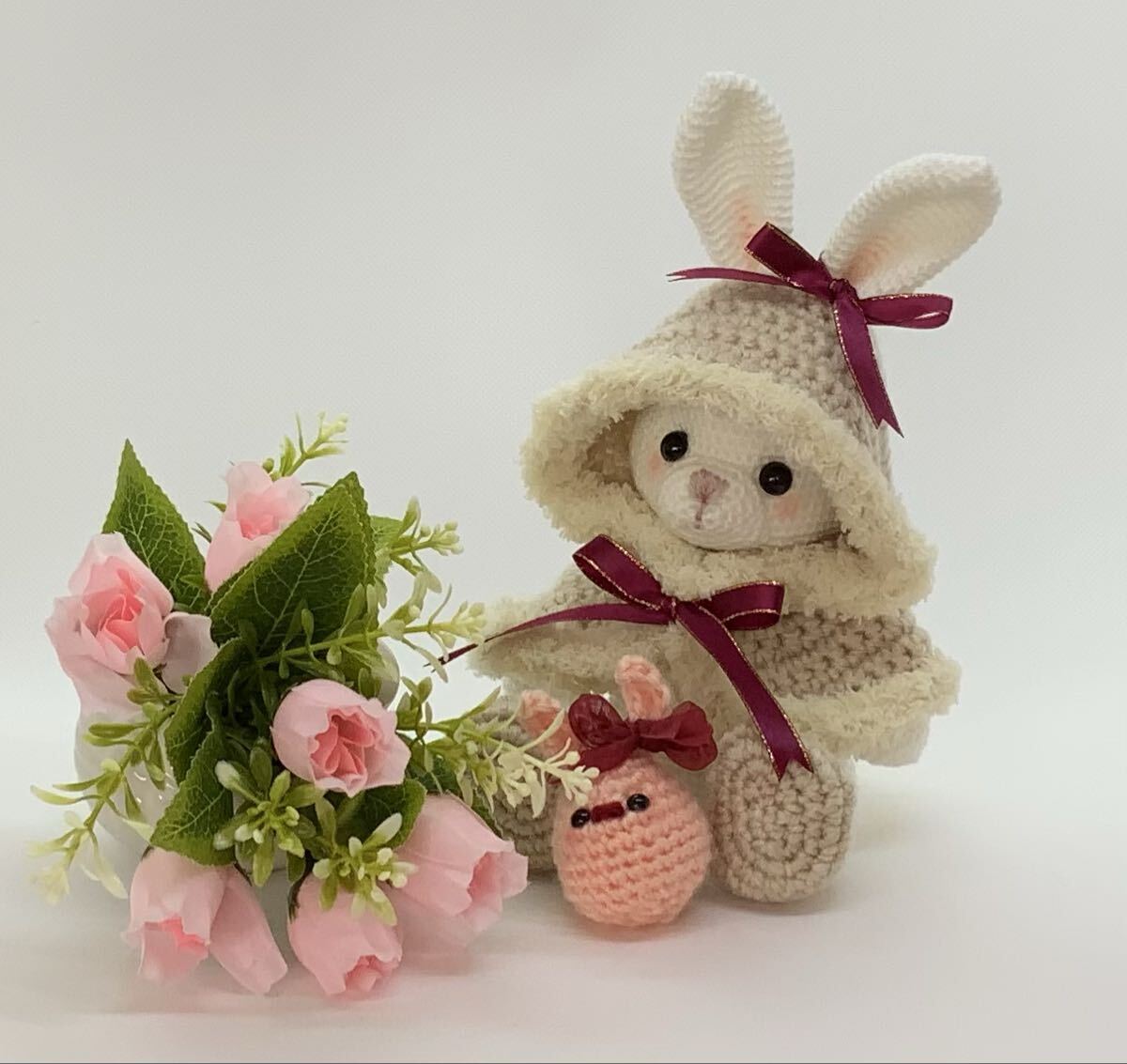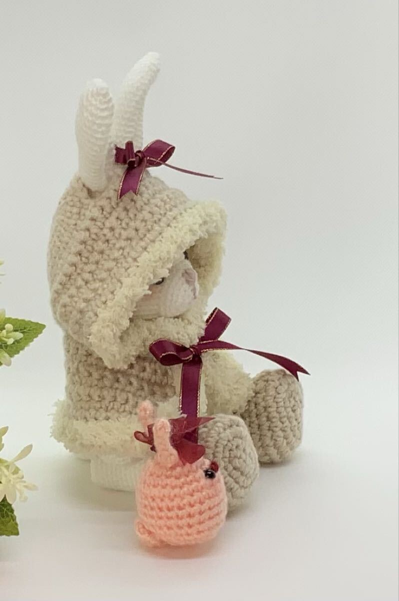 ☆小さいうさぎさん。ベージュのボア付きマントとブーツ☆ピンクのミニうさぎ?さんも一緒です♪
