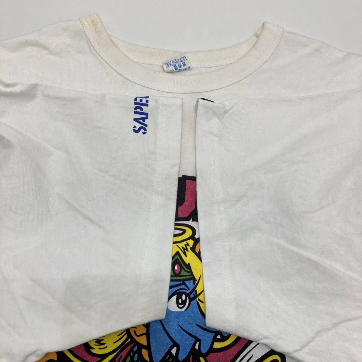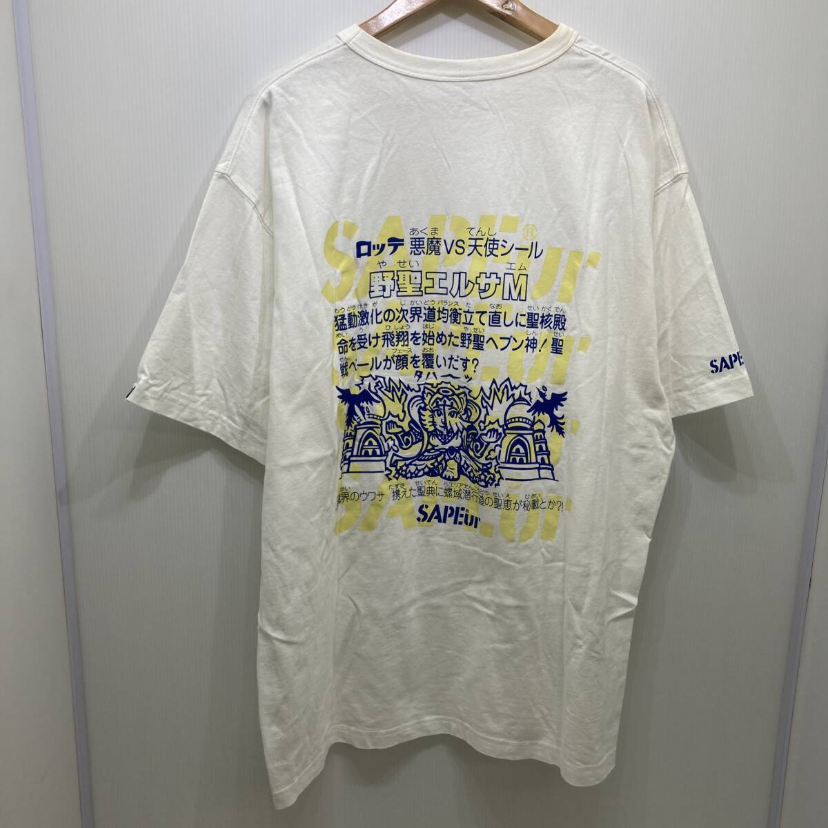 【中古】SAPEur サプール ビックリマン 野聖エルサM コラボ Tシャツ 半袖 XXLサイズ ホワイト ロッテ ビックリマンプロジェクト