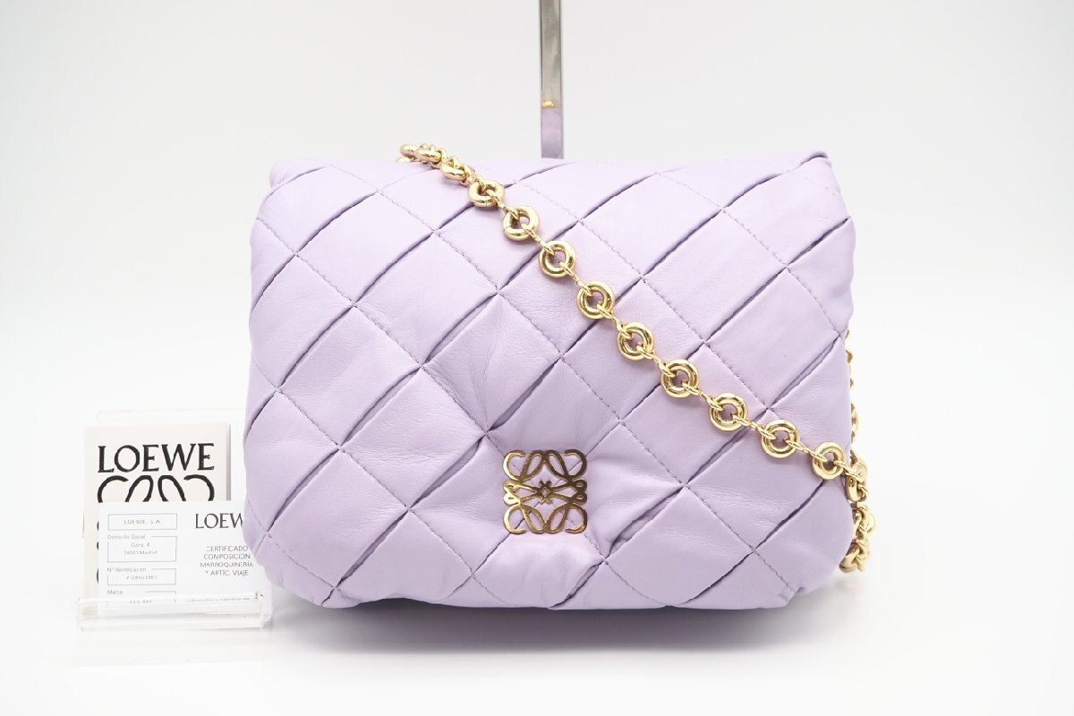 ★3日以内返品可★ LOEWE ロエベ A896P41X14 ラムスキン パファー ゴヤバッグパープル パープル バッグ