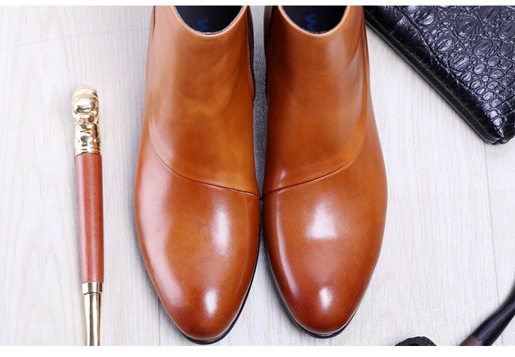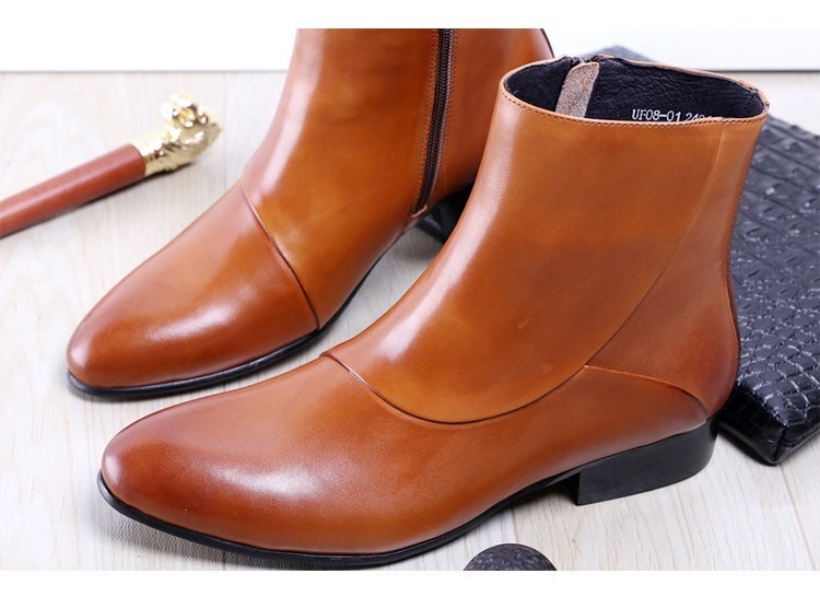 メンズ ビジネス シューズ 本革 ライトブラウン サイズ 26.5cm 革靴 靴 カジュアル 屈曲性 通勤 軽量 新品 ショートブーツ【apa-166】