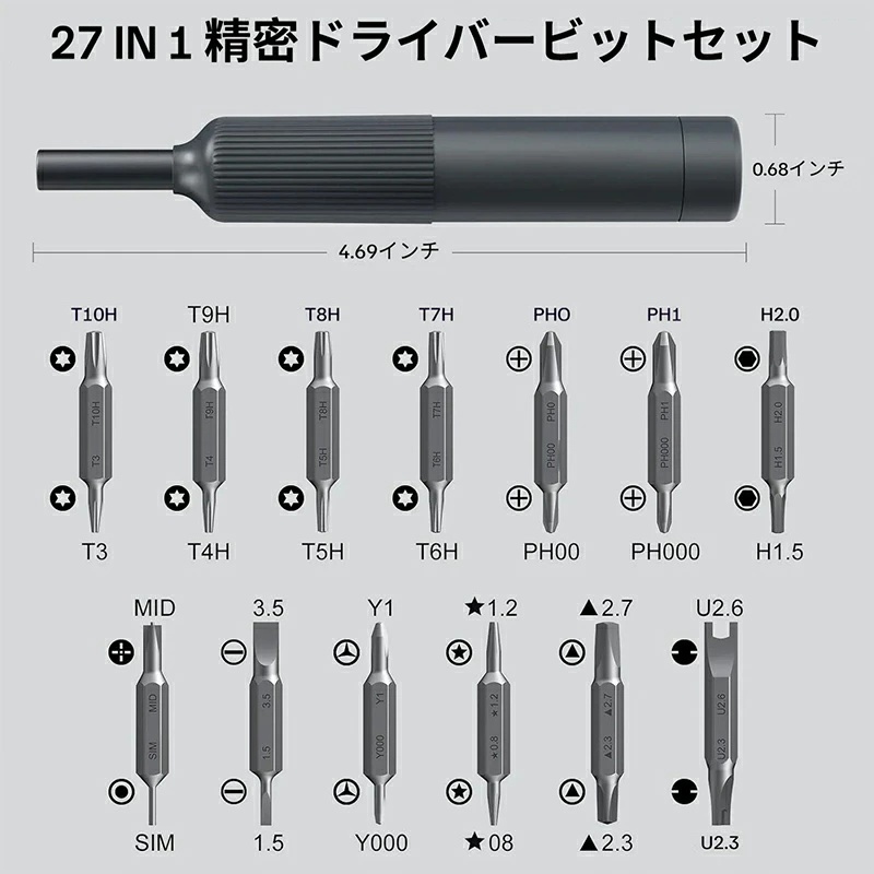 精密ドライバー セット 27in1 特殊ドライバー 特殊ドライバーセット iPhone DIY Nintendo Switch 家電修理 工具 プラス マイナス トルクス