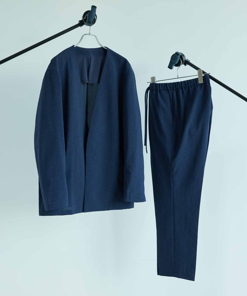 参考商品名:ノーカラージャケット&イージーパンツ セットアップ/イージーケア/3シーズン着用可能/ONOFF兼用