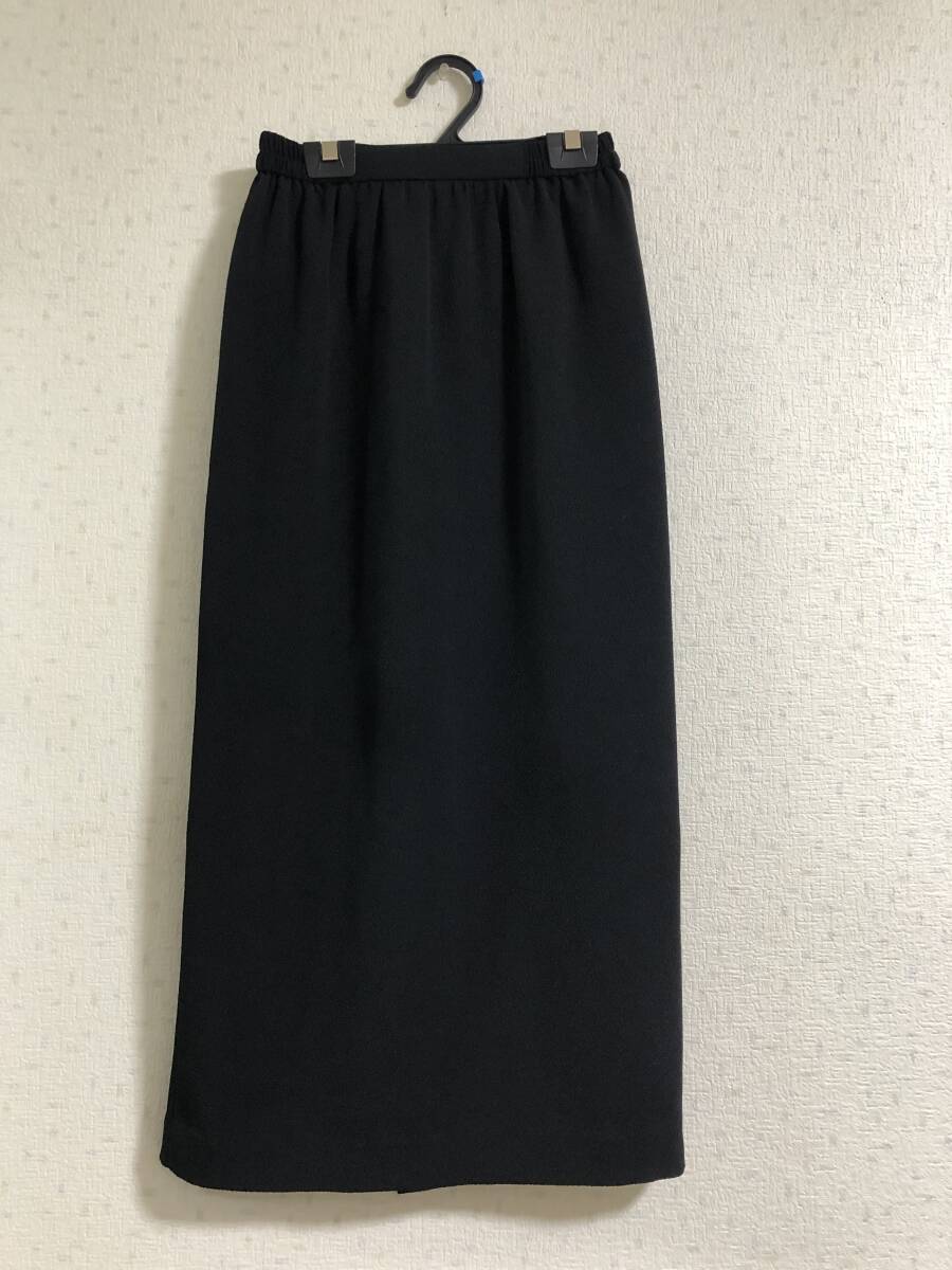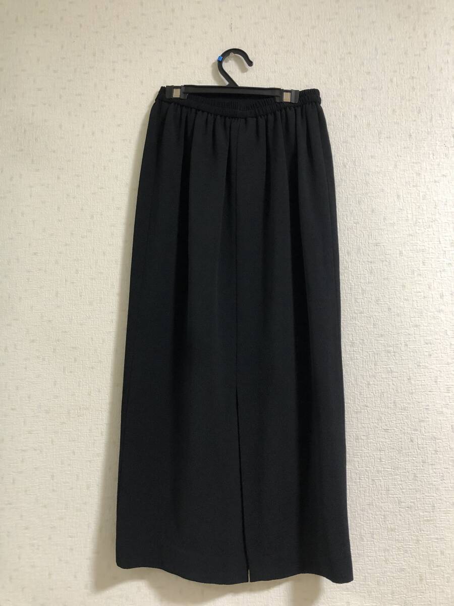 お色が黒色の上品で重宝するロングスカートになります。着丈約81㎝(裾から上へ約30㎝スリットが入っています)ウエスト平置き約45㎝(ゴムが入っていますので最大に伸ばしました)裏地付いています。着用回数少なく新品同様だとは思いますが着用はしています。ご理解のある方のみご入札をお願い致します。くれぐれも神経質な方はお控え下さい。