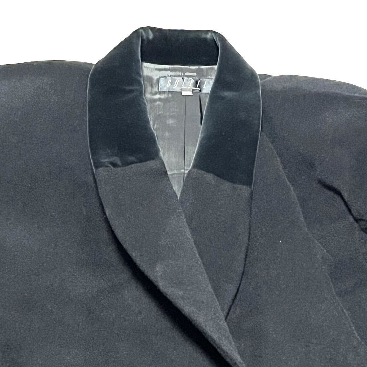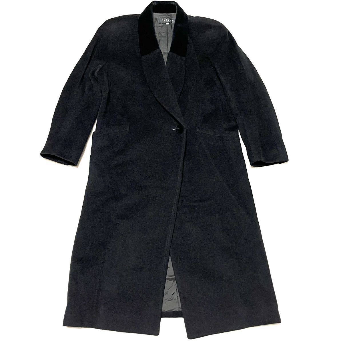 ★SOLEIL★三陽商会★カシミヤ100%★ショールカラー★ウールロングコート★Mサイズ★黒 ブラック★レディース★ベルベットボタン★ダブルブレスト★肩パッド★