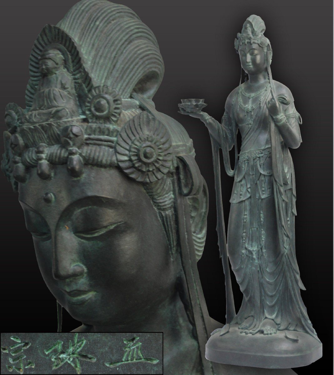 | ▼商品名 | 松久宗琳 観世音菩薩 色紙付 ブロンズ銅 高さ91cm 26kg 置物 仏像 仏師 彫刻 観音菩薩 立像 美術 仏教 |