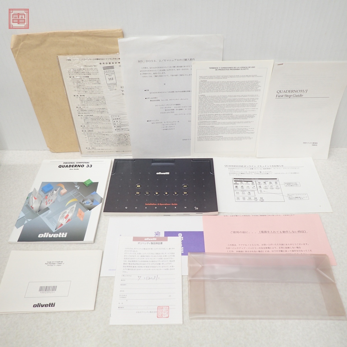 1円〜 美品 olivetti QUADERNO 33 PT-AT-60 オリベッティ クアデルノ33 HDD無し 通電不可 ジャンク ■ジャンク品として出品しておりますので、どの様な不具合が生じましても当店では交換・返金・返品等の対応はできません。 ■ご理解ご納得いただける方のみご入札をお願いいたします。 ■起動不可のためジャンクとさせていただきます。 ■本体にキズ、汚れ、サビがあります。また、ゴム足が劣化してベタついているためテープでカバーしてあります。 ■箱とQUADERNO 33本体の製造番号は一致しています。 ■キャリングケースにキズ、汚れ、イタミ、カビ、金具のサビがあります。 ■一部の取説・ケーブル・FDは未開封と判断し開封しておりません。万一リパック品でしたらご容赦ください。 ■経年によりFDにはカビがあるものとお考えください。 ■箱にヤケ、キズ、汚れ、イタミ、シール貼付、書込み、ザラつきがあります。 ■写真のものが全てです。付属物の有無や状態については写真からご判断ください。 ■チェックに使用したモニターやチェック機器等は、特に表記がない限りは付属いたしません。 ■商品到着後、当店の保証期間中は、商品及び箱や取説、付属品などを1つでも廃棄や破損をしないようにお願い致します。廃棄や破損をした場合、商品に問題があった場合でも対応や返金などの対処ができなくなります。 | |||