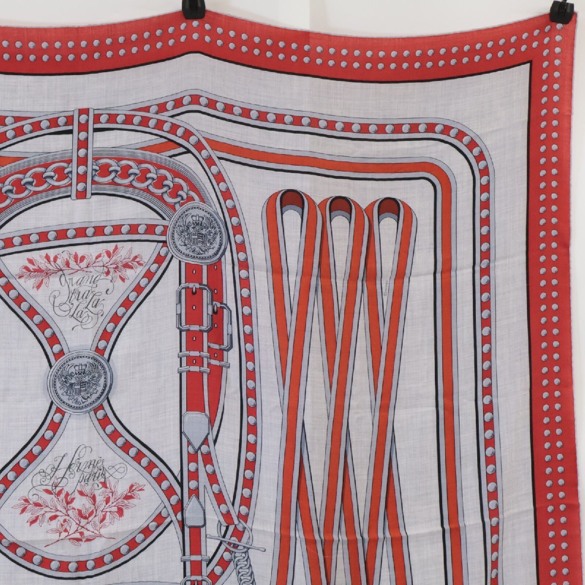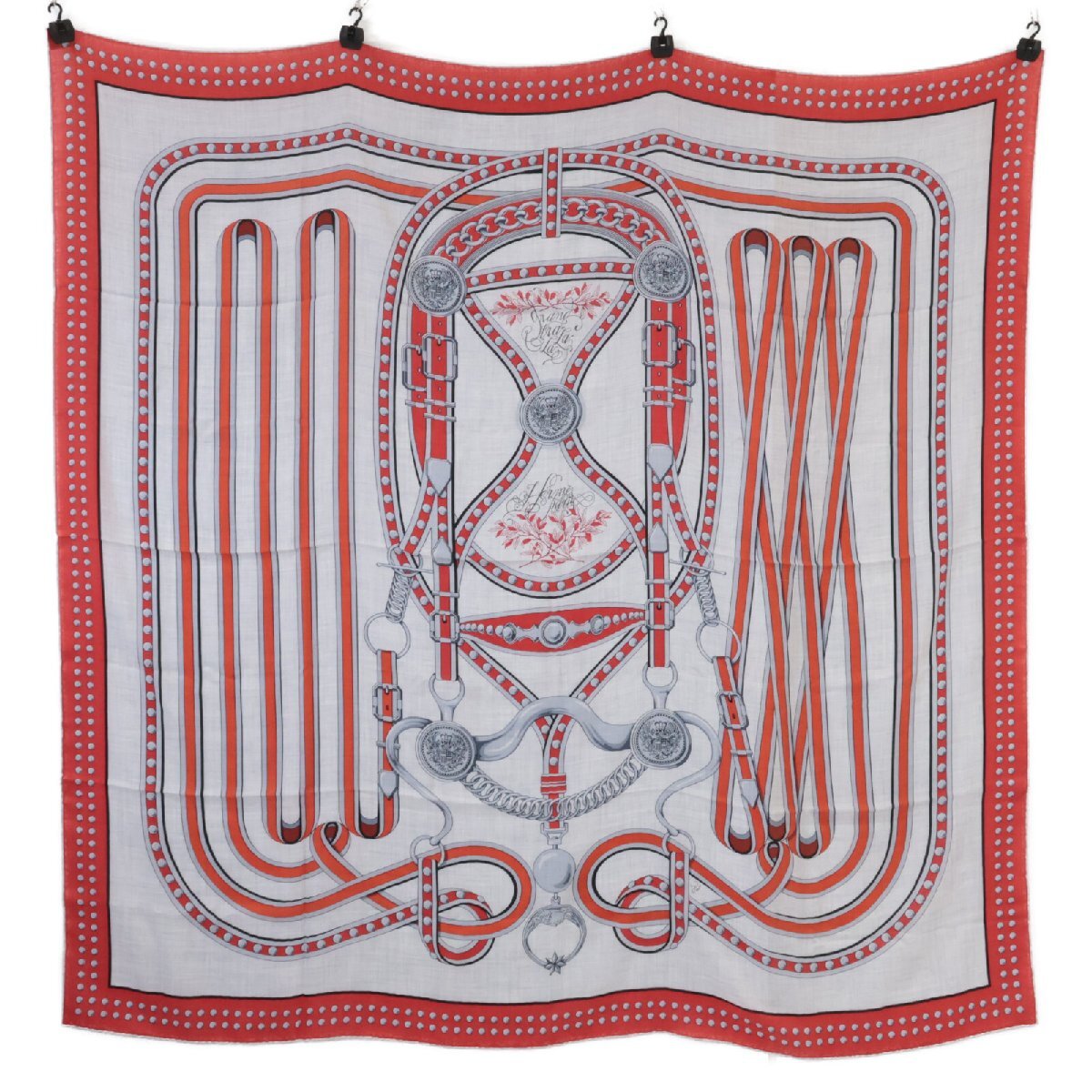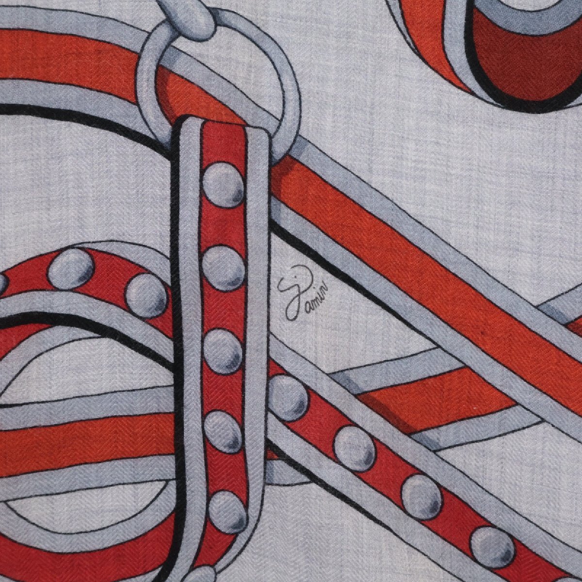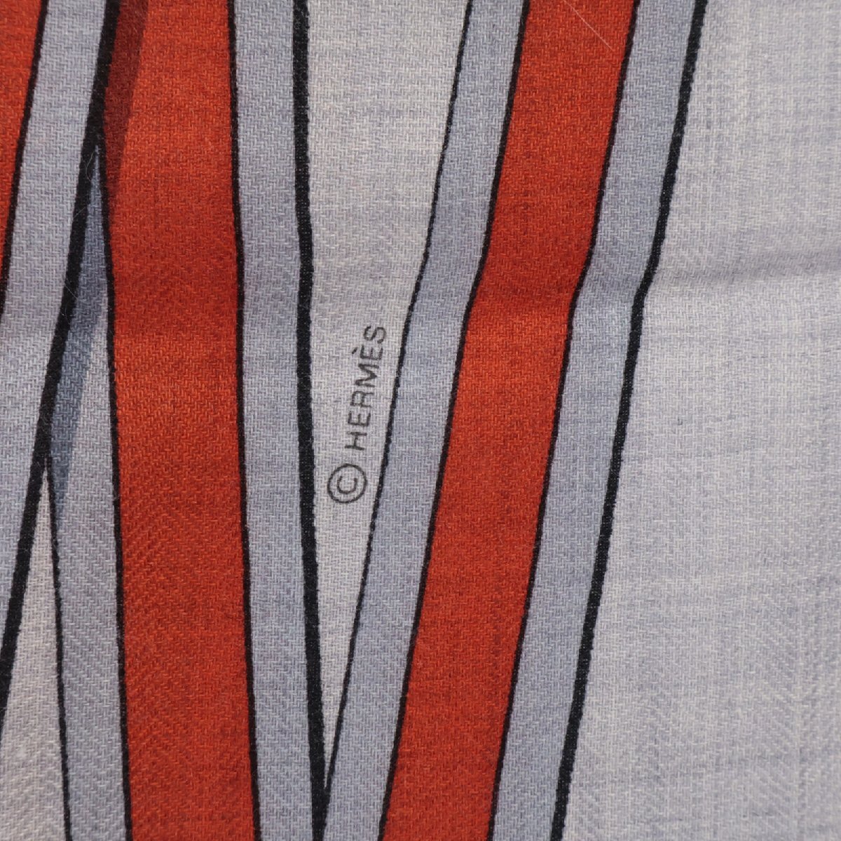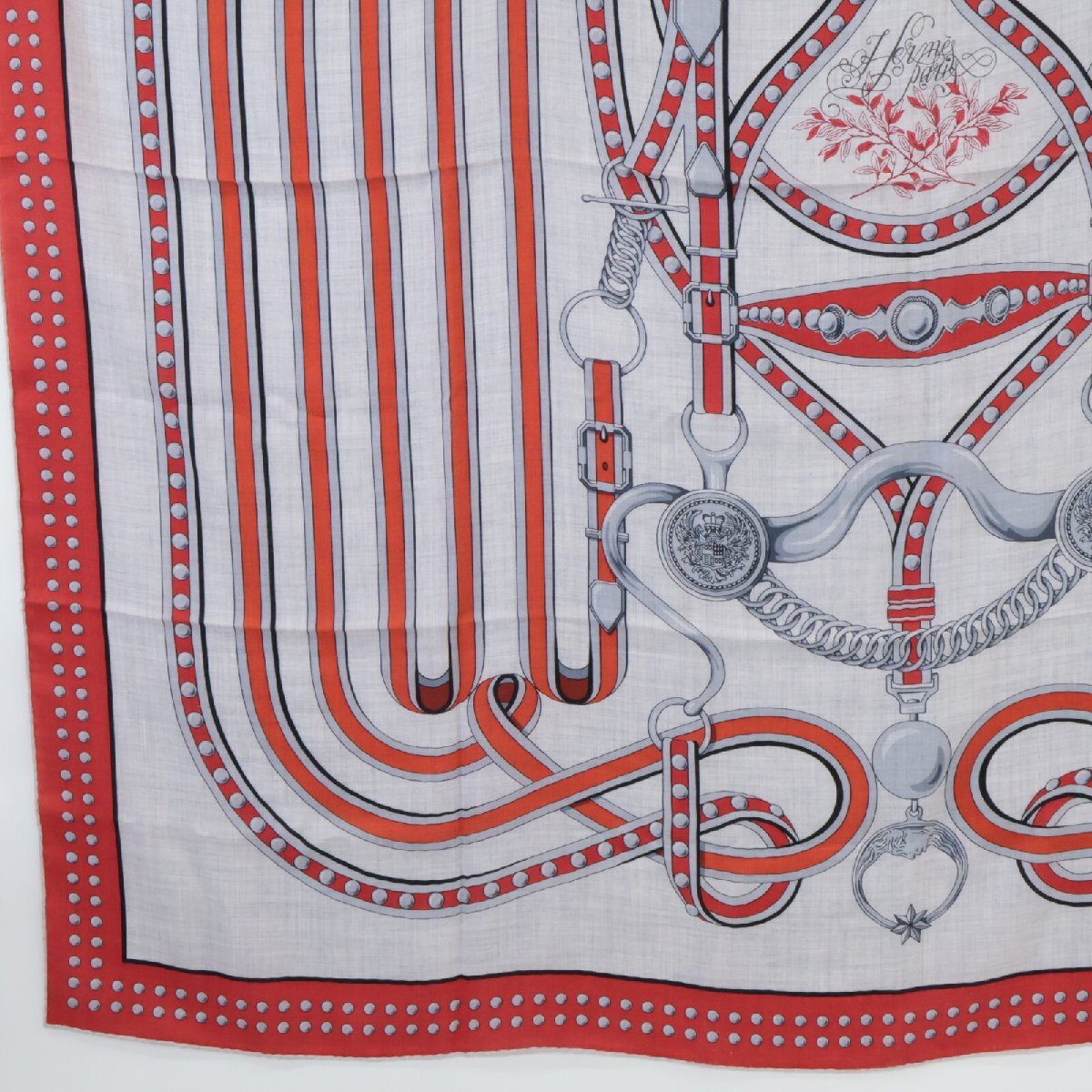 美品 HERMES エルメス Grand Tralala グラン・トゥラララ カシミヤ/シルク カレジェアン ストール グレー/レッド レディース