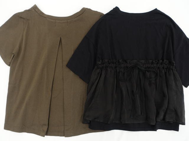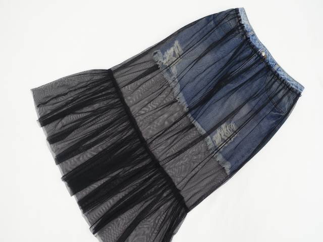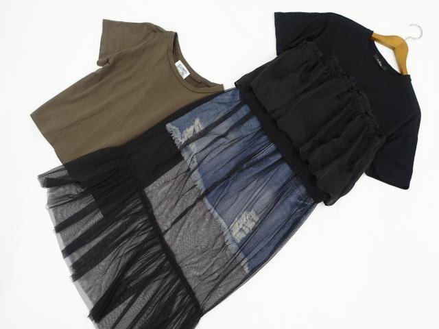 半袖カットソー2点+チュール付きデニムミニスカート コーディネート3点セット M相当 グリーンカーキ/ブラック/ブルー×ブラック ガーリー・カジュアル系 20代~