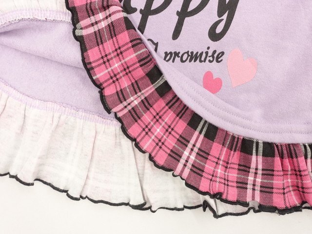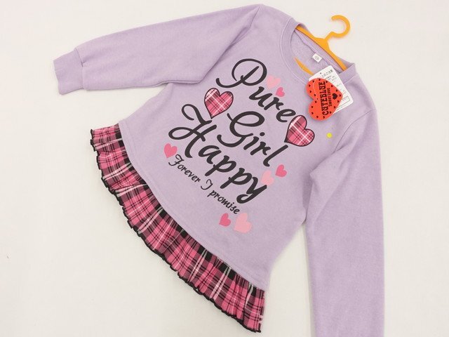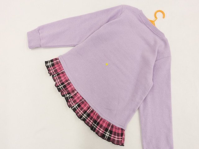 長袖 クルーネック 裏起毛カットソー 120 パープル ブラック 英字&ピンク×ブラック チェック柄 【メール便可】