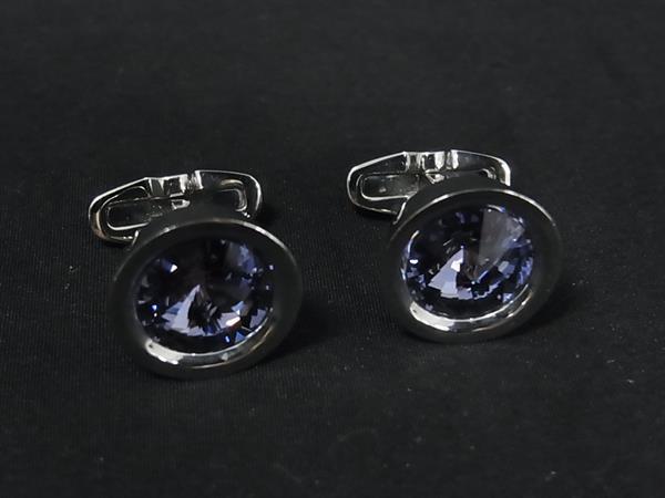 ■美品■ SWAROVSKI スワロフスキー カフリンクス カフスボタン アクセサリー メンズ シルバー系×パープル系 DK5997