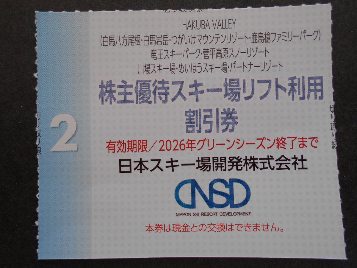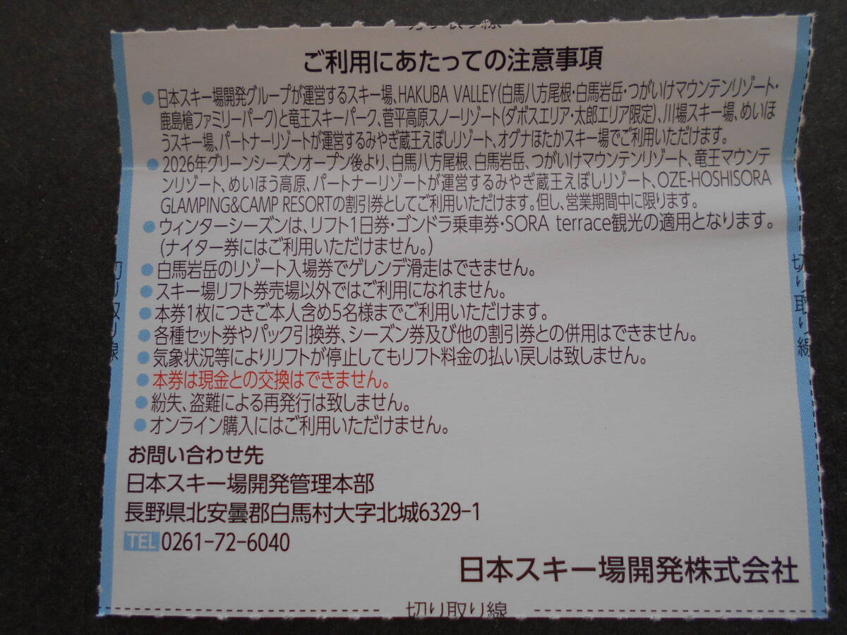 スキー場リフト利用割引券1枚(白馬八方尾根/白馬岩岳/つがいけ/鹿島槍 /竜王/ 菅平高原/ 川場/ めいほう) 日本スキー場開発優待券