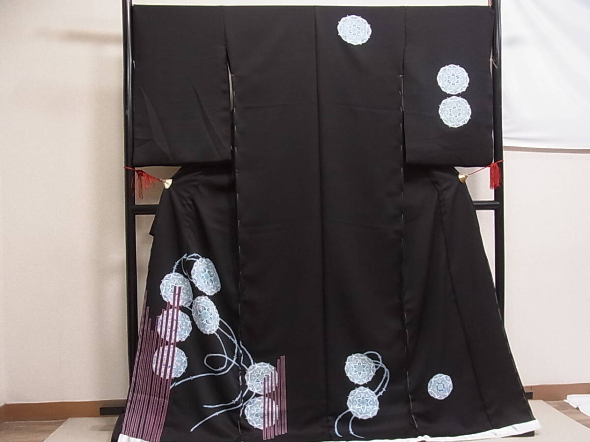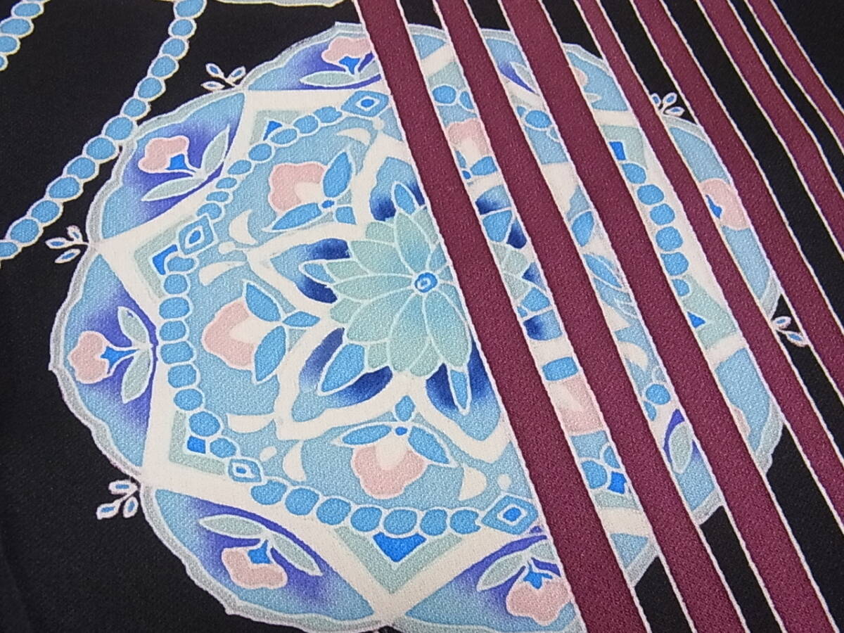 着物おきな2★訪問着 仮絵羽 友禅 正倉院文様 黒色 未使用品 正絹★r028