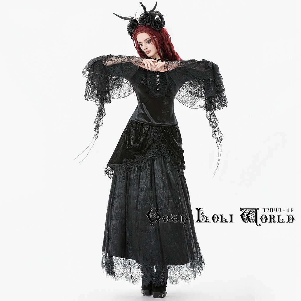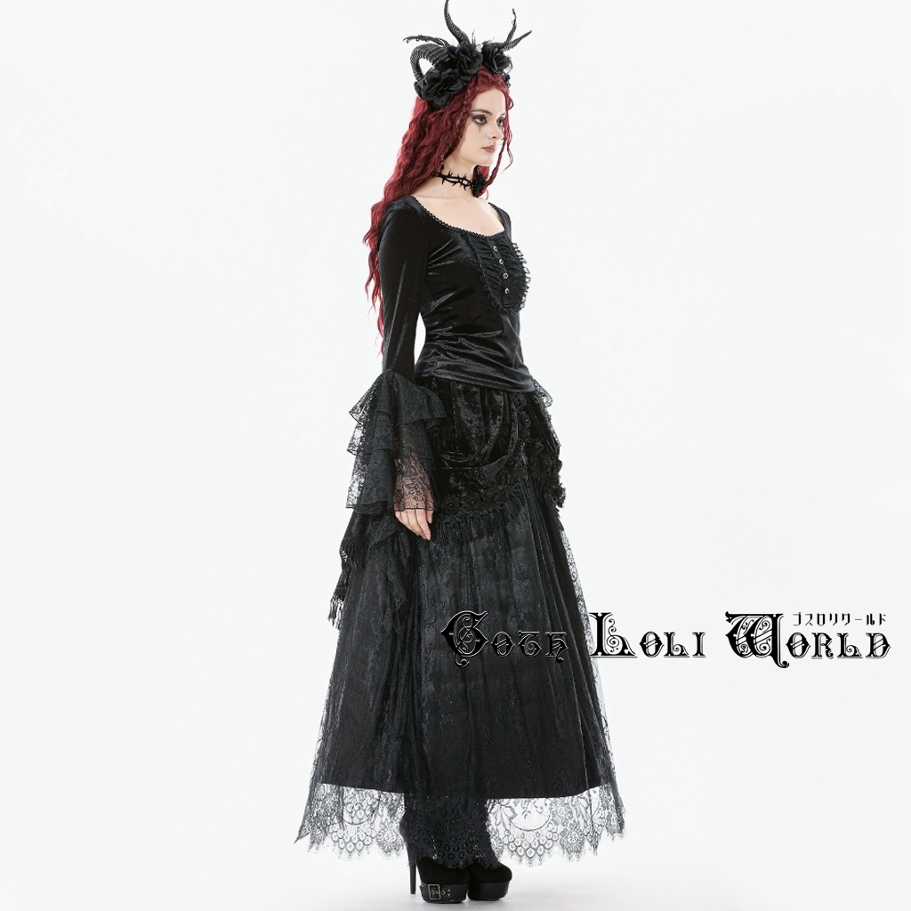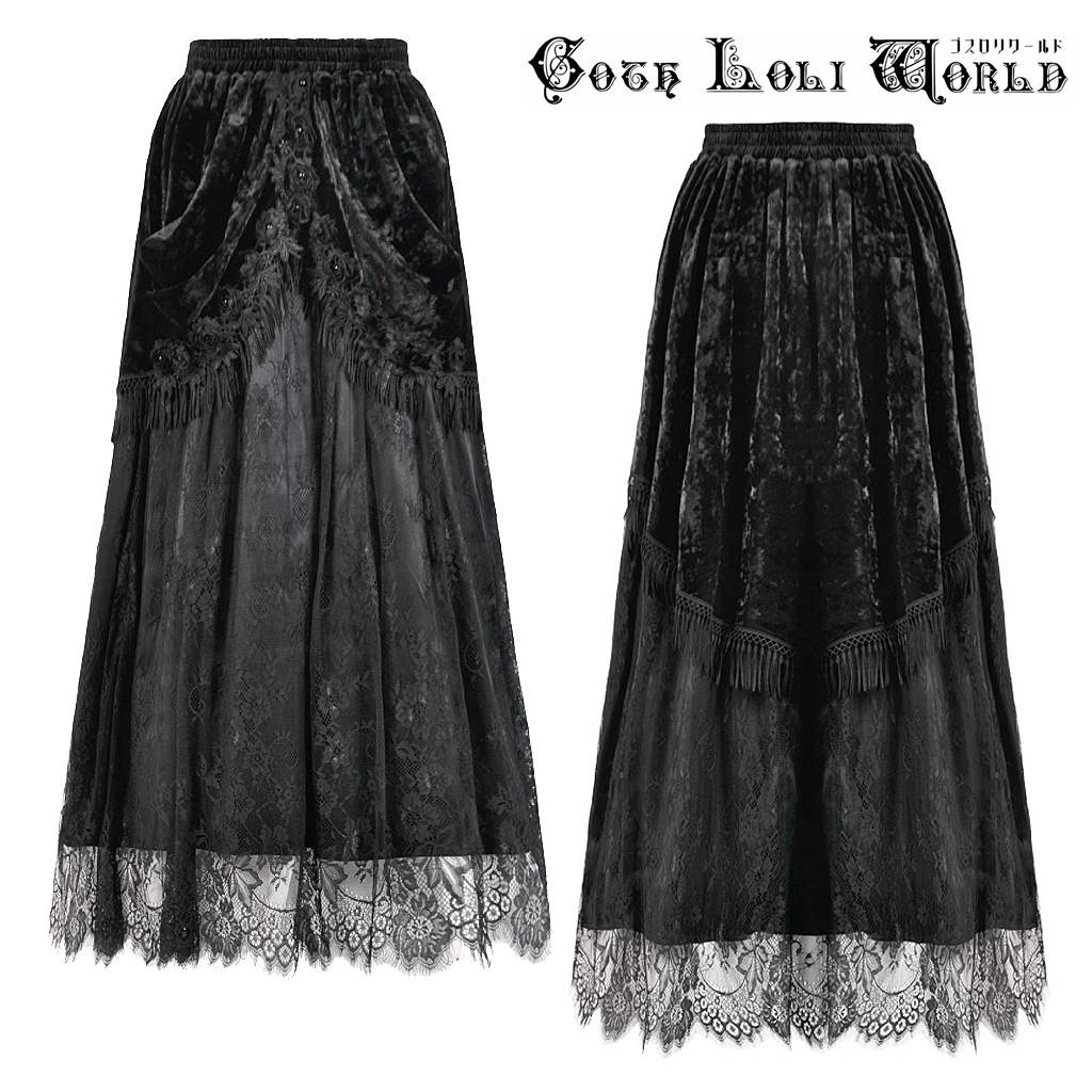 即納 KW410 ゴスロリファッション 地雷系 ベロア ダンス用 ロングスカート ゴシック ロリィタ ロリータ ビジュアル系 ヴィジュアル系